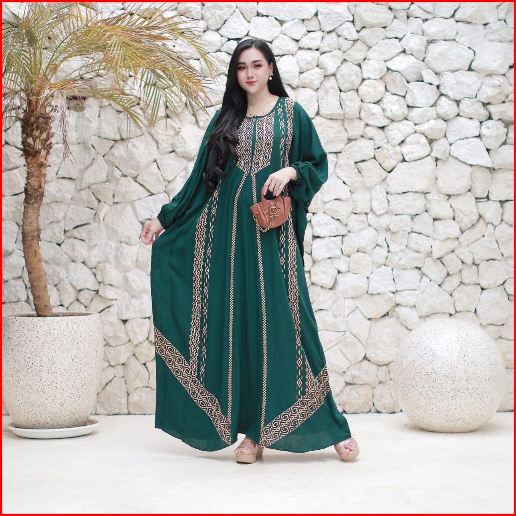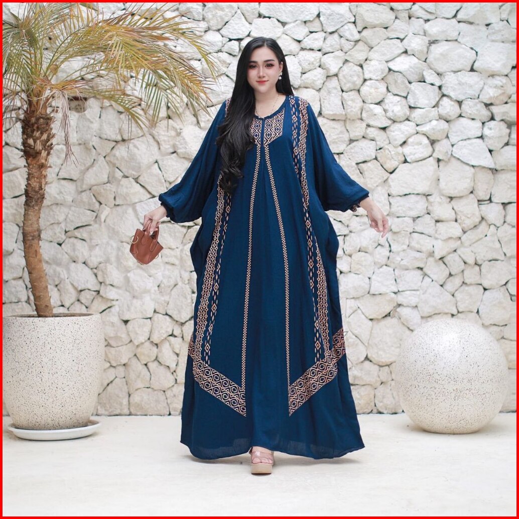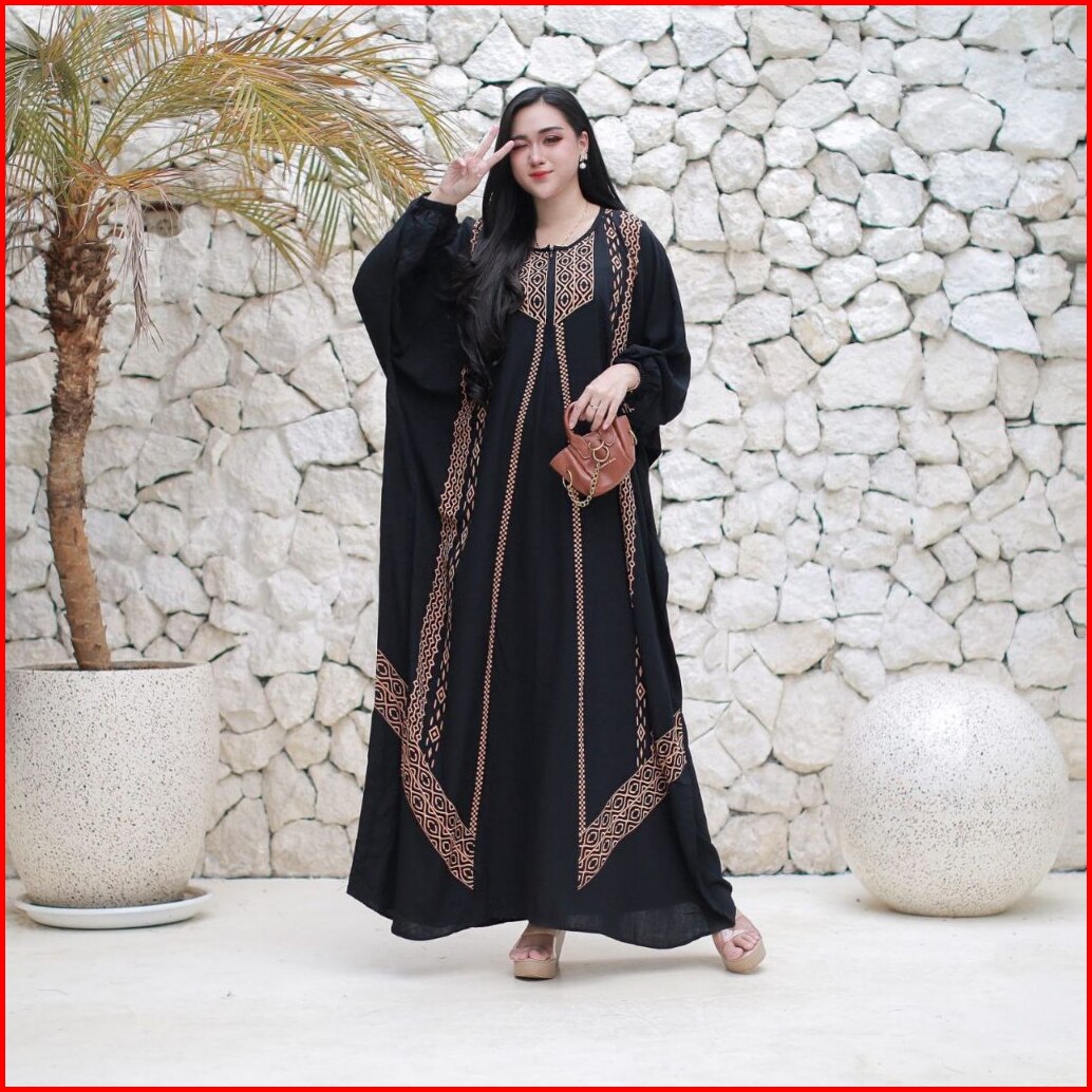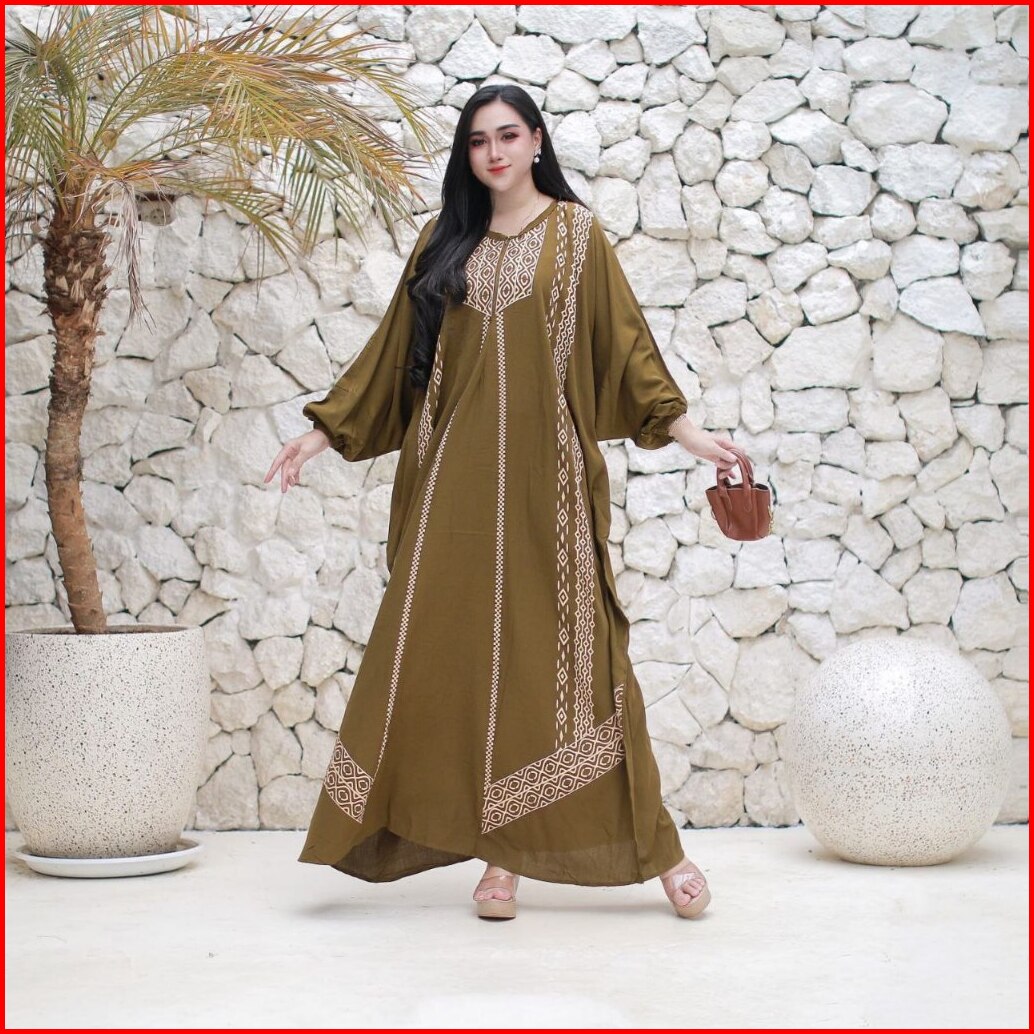 El Rumy Collection - Gamis Kaftan Terbaru Rayon Premium Jumbo Busui Motif Karina