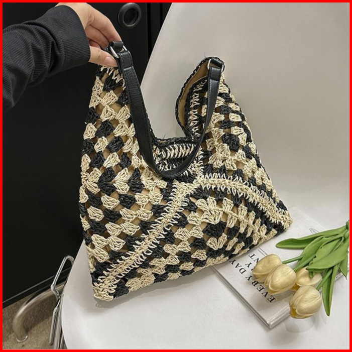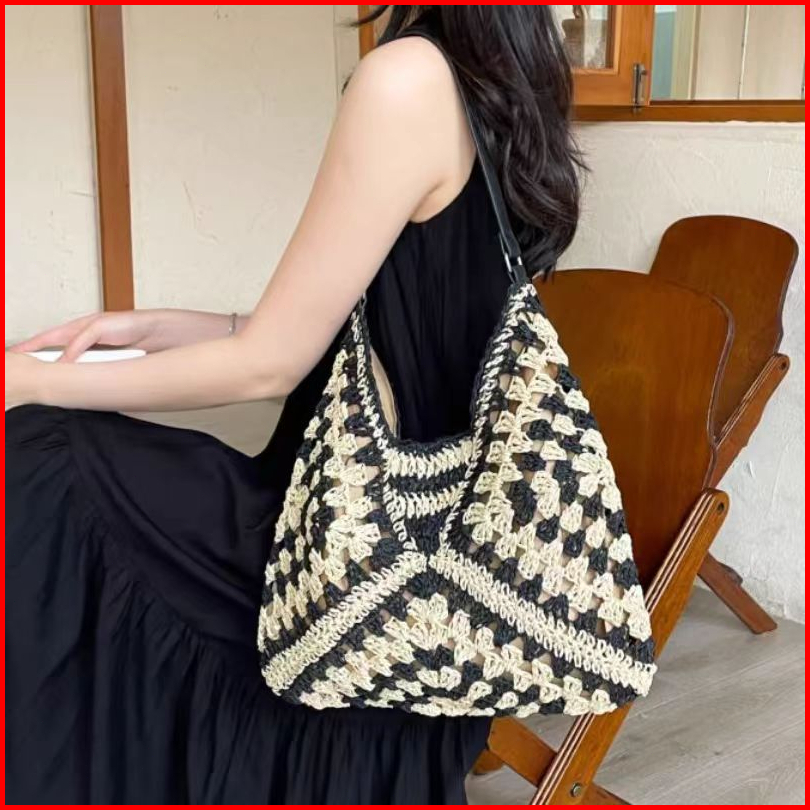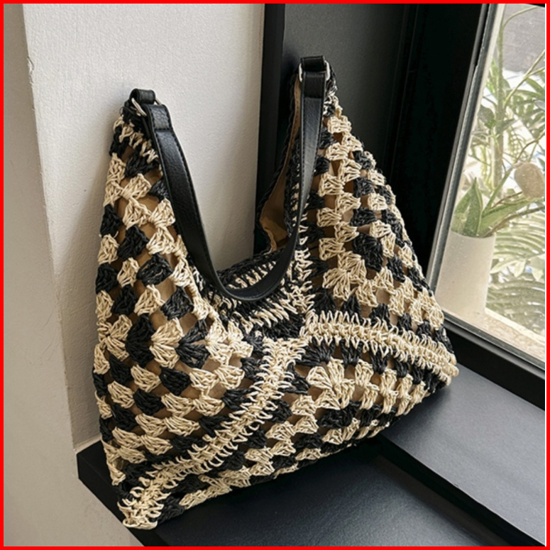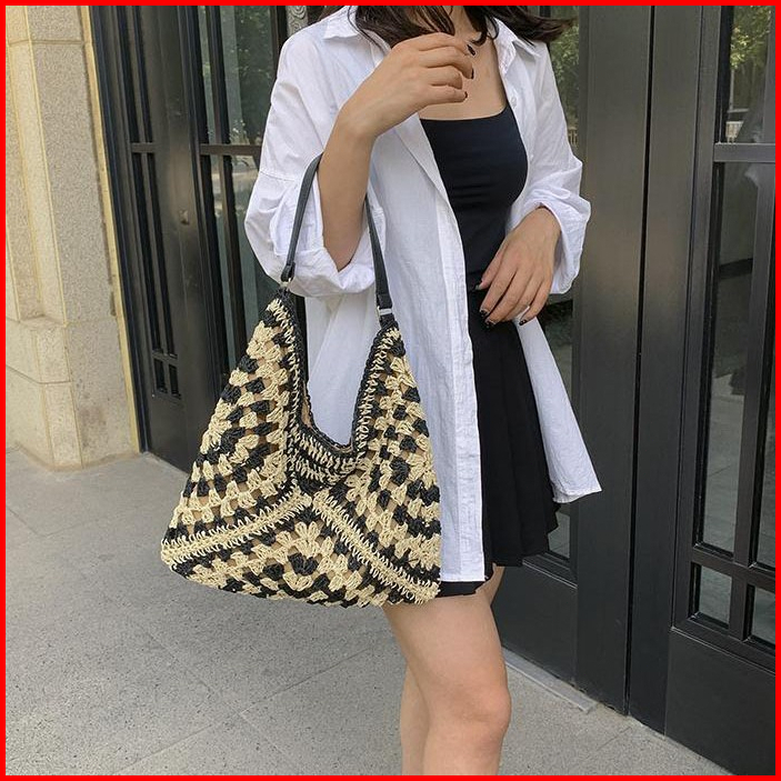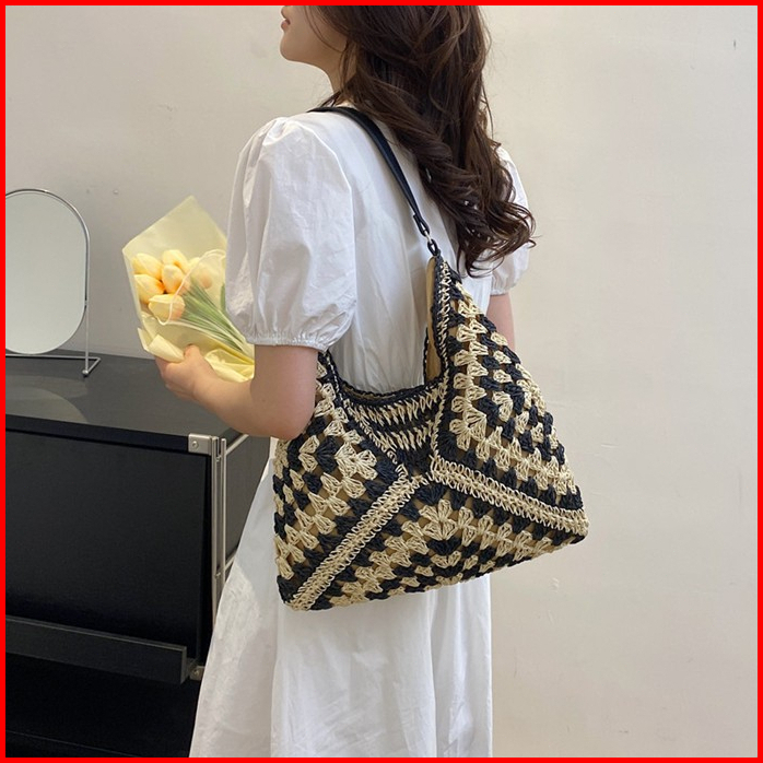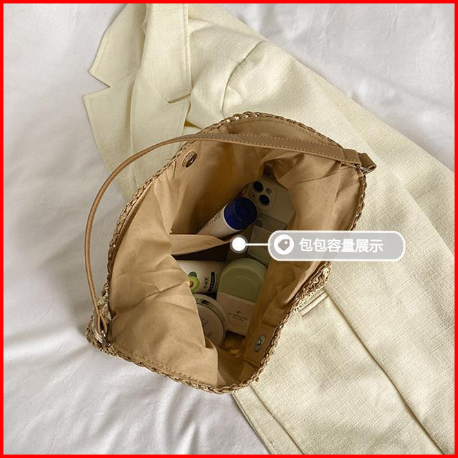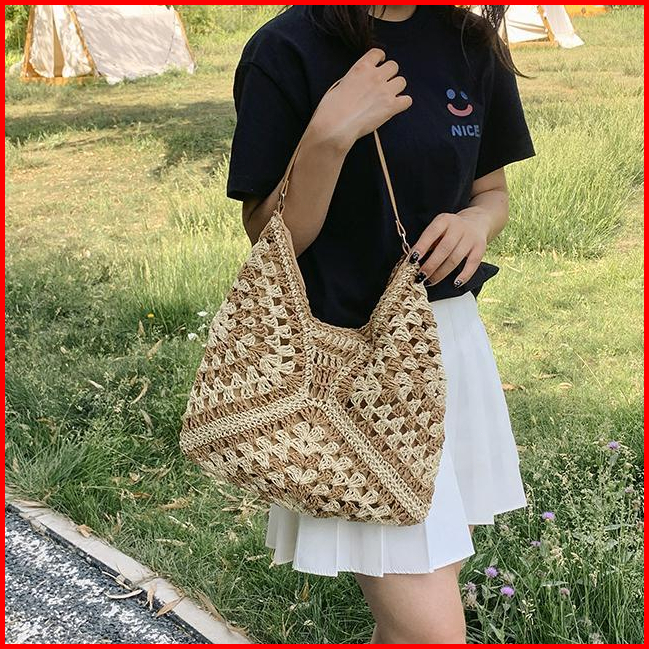 Tas Bahu Kasual Korea Impor Tas Pantai Liburan Perancis Sederhana Tas Tenun Tangan Tas Jerami Modis