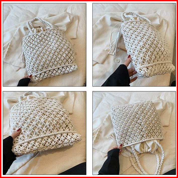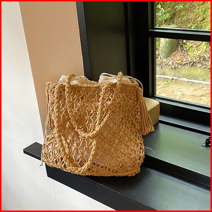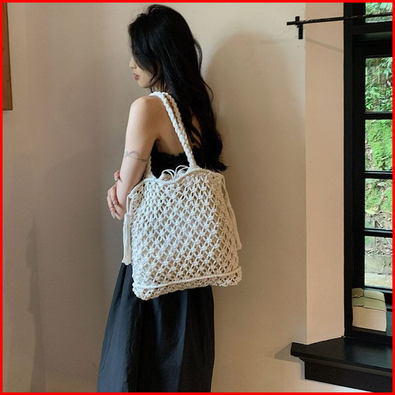 Tas Bahu Kasual Korea Impor Tas Jerami Kapasitas Besar Tas Pantai Liburan Perancis Sederhana Tas Tenun Tangan Tas Tote B