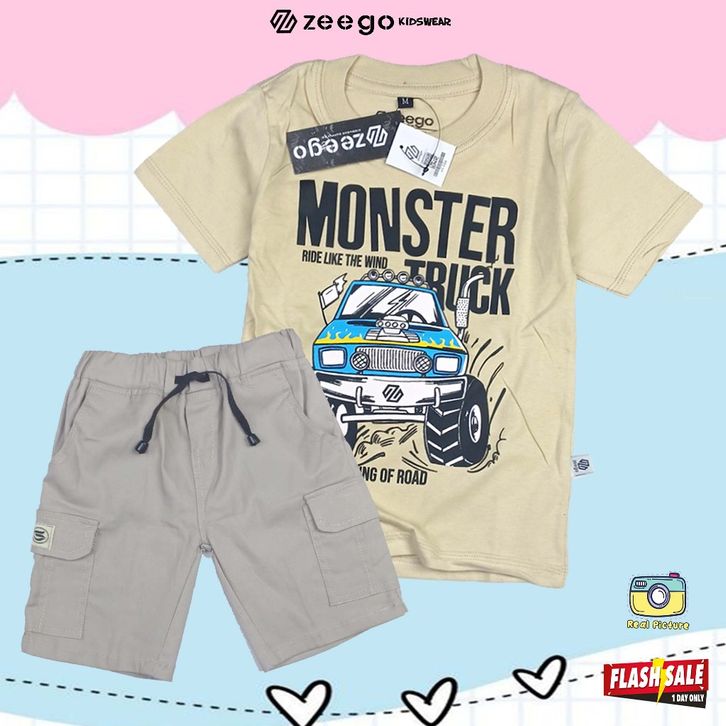 SAYANG ANAK Setelan Baju Kaos Distro Anak laki laki Usia 3-12 tahun Bahan Katun Premium Gambar Monster Truck SAYANG ANAK