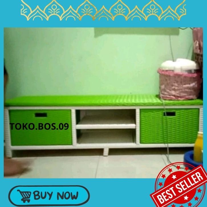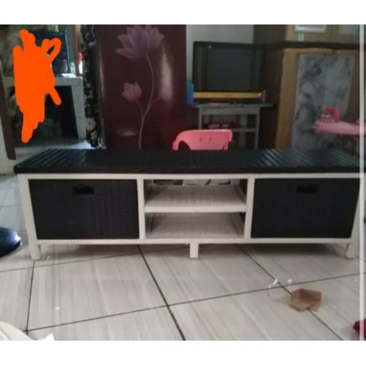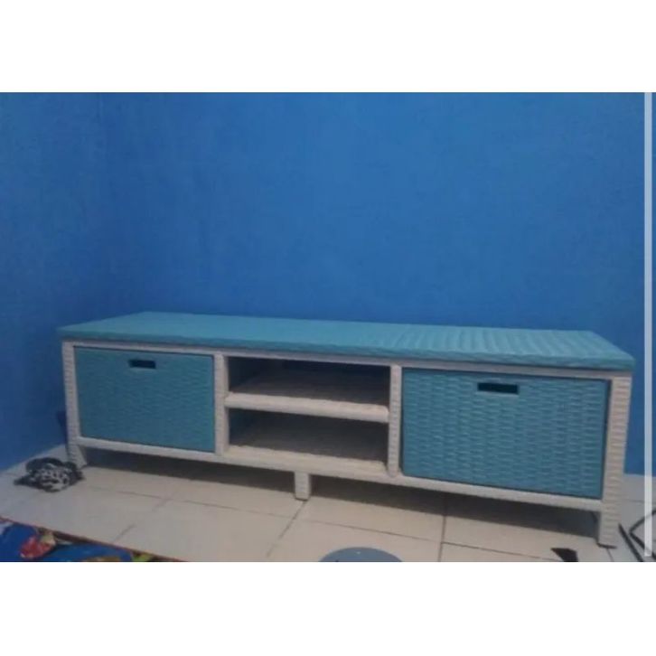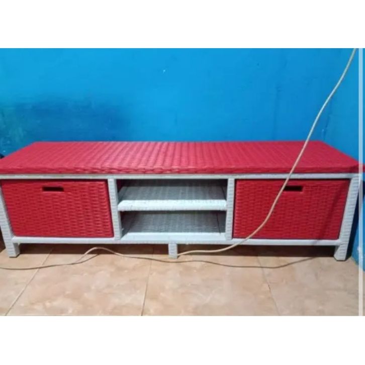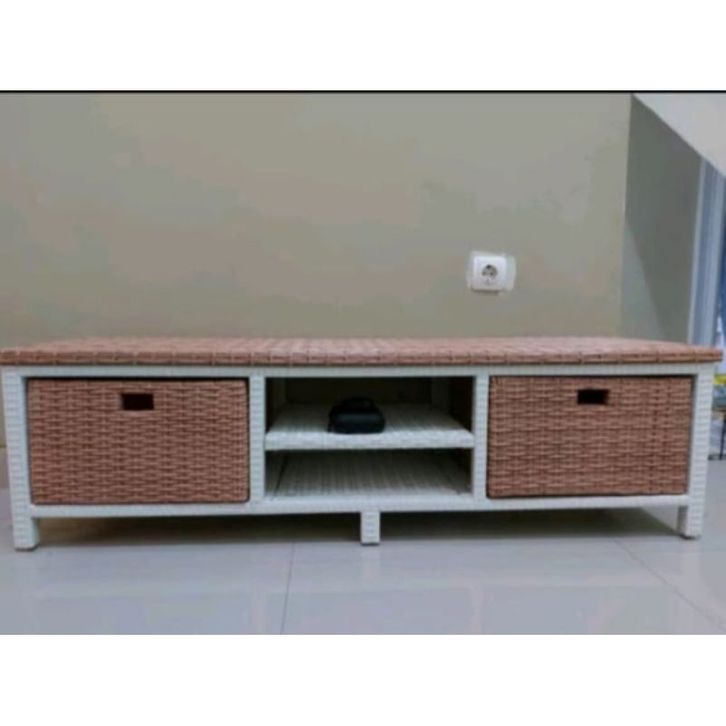 Lemari Rotan Sintetis Dvd Laci 2 Meja Tv Minimalis