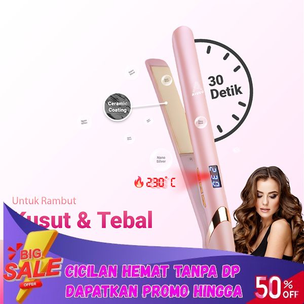 [Mall] AIUEO Catokan Rambut 517 Dioda Alat Catok Rambut 3in1 Plat Kecil 35 Watt Kabel Putar Warna Pink