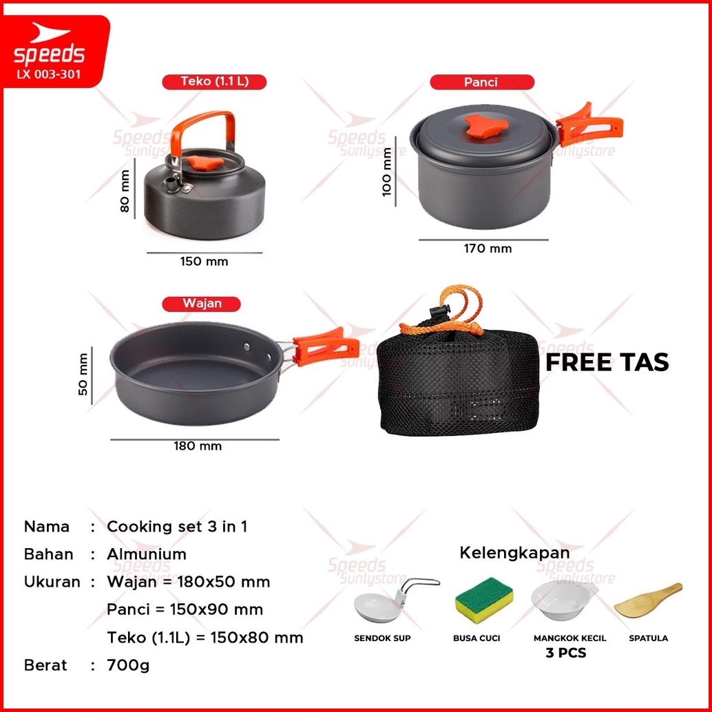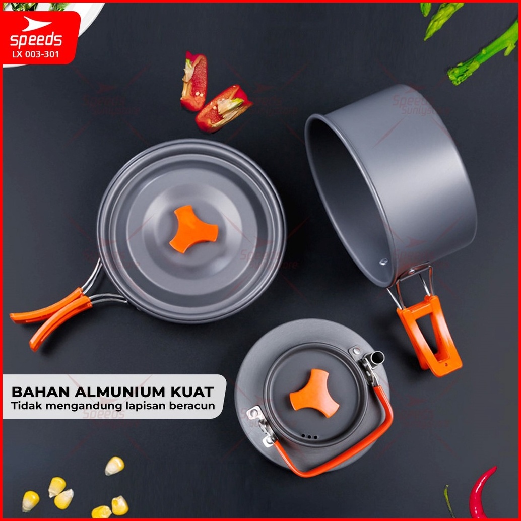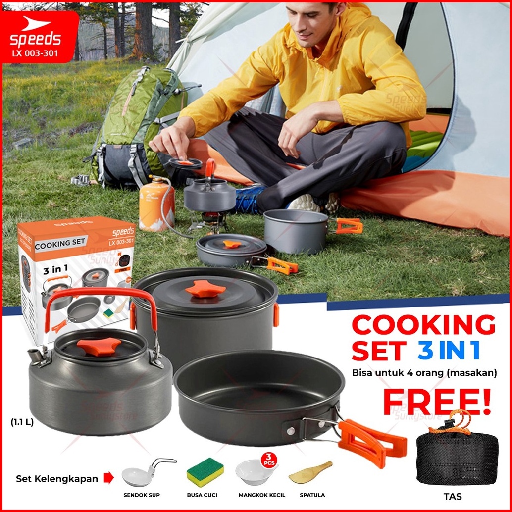 Speeds Alat Masak Set Mini Camping Cooking Set Pesta Nesting Stove Panci Ceret Cookware 3in1 Portable Tas Pantai Outdoor