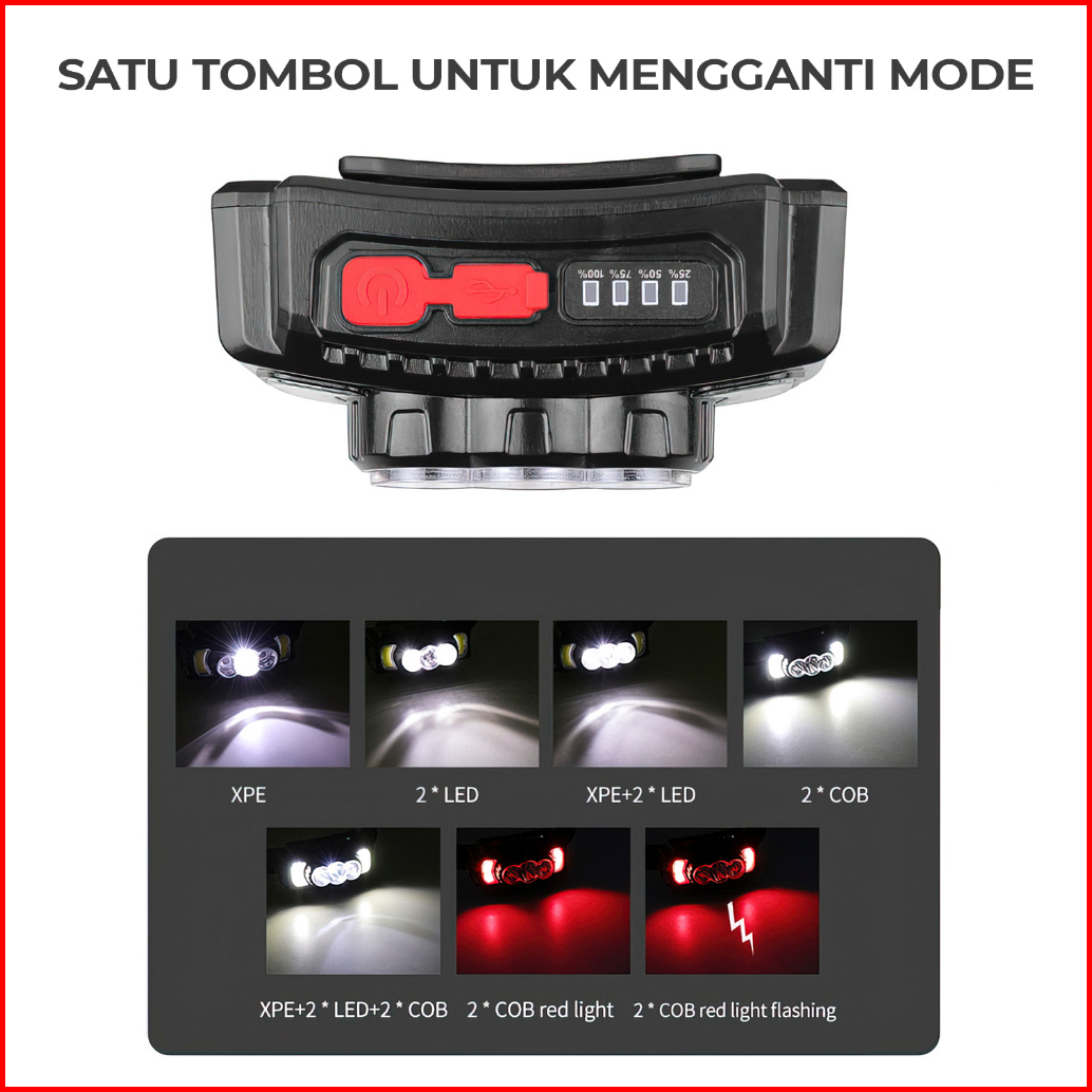 H2s Senter Cas Kepala Headlamp 7 Mode 1200mah Hx-810 Usb