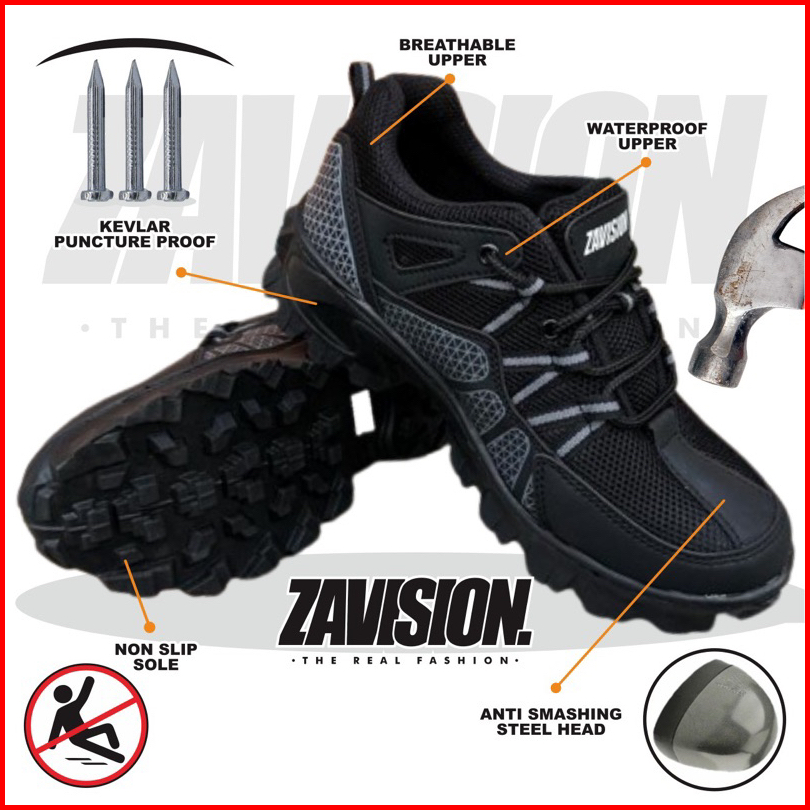 Zavision Sepatu Safety Ujung Besi Sepatu Hiking Sepatu Gunung Adventure Shoes Karet Premium Quality Size 39-44 Unisex Z-