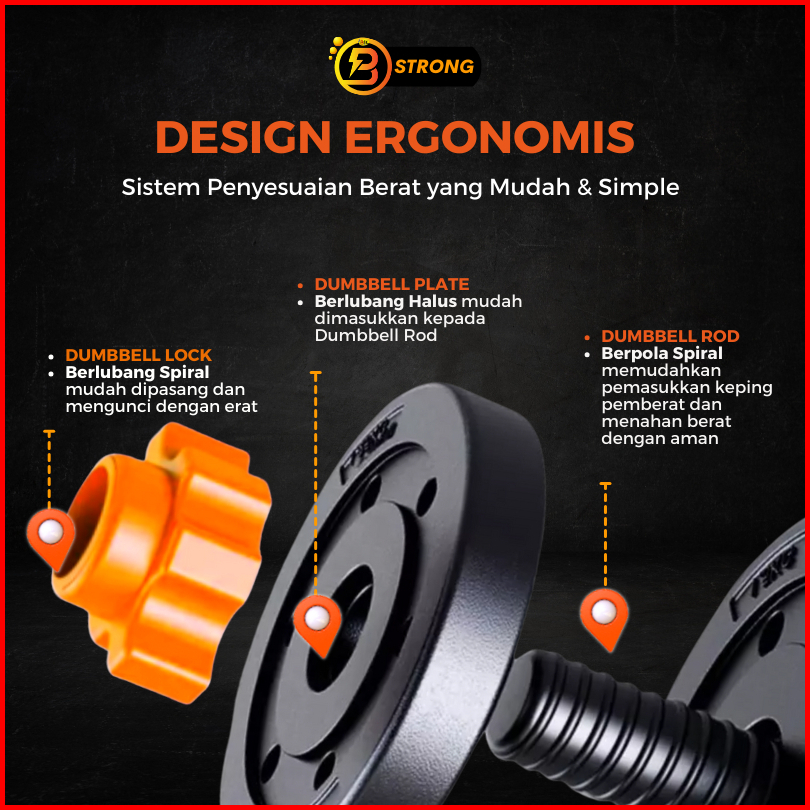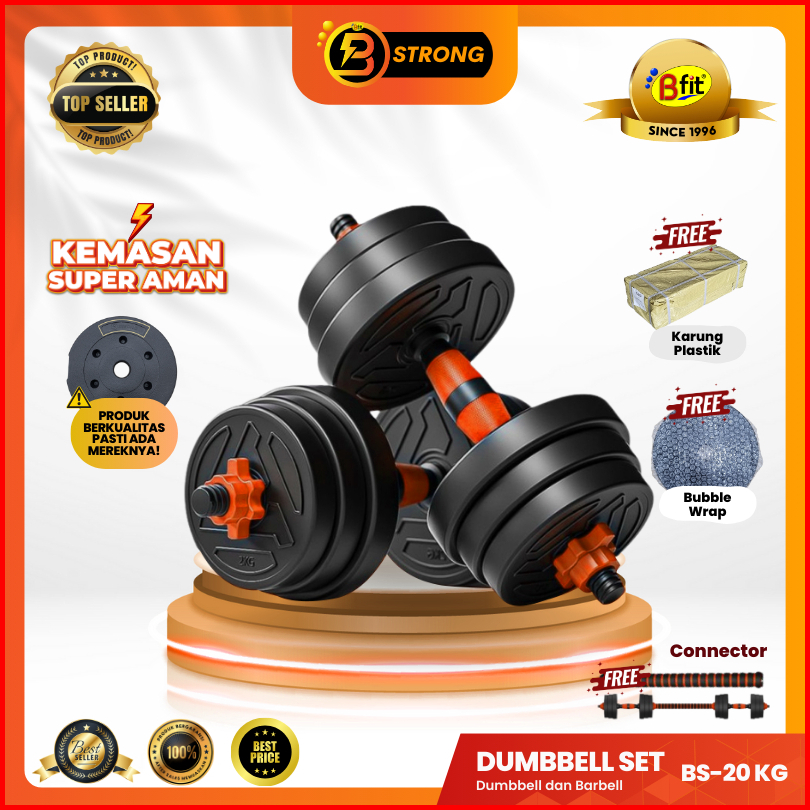 B-strong Bs-20 Adjustable Dumbbell Set 20kg - 4-in-1 Barbell Kettlebell Push-up Alat Fitness Gym