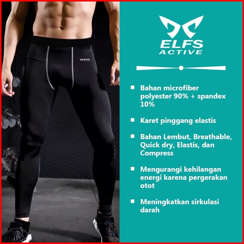 Elfs Fits Celana Panjang Olahraga Pria Baselayer Legging Spandek