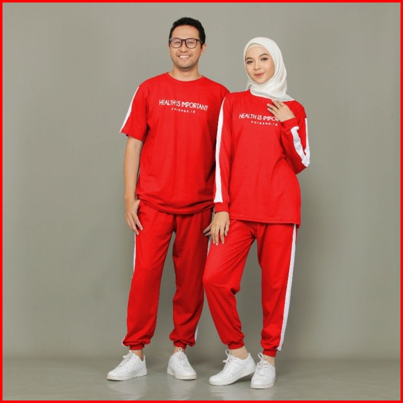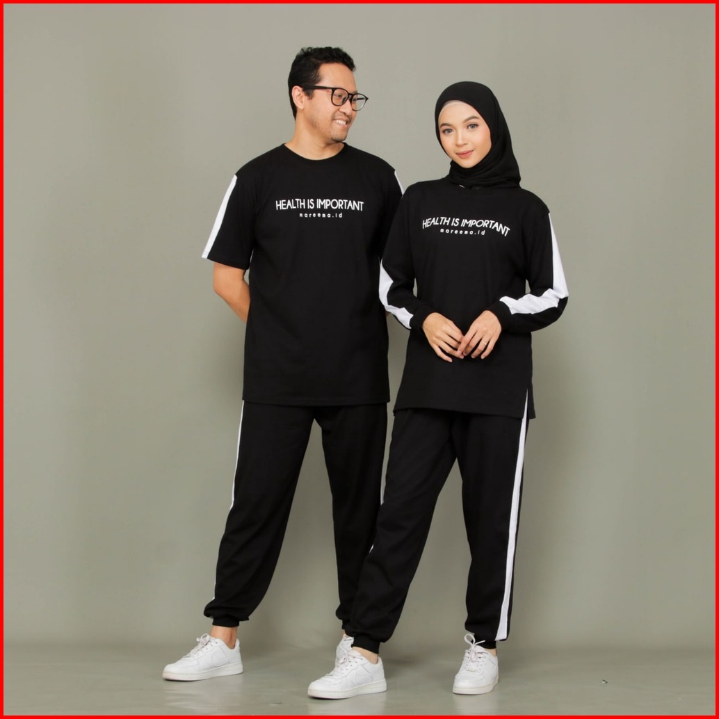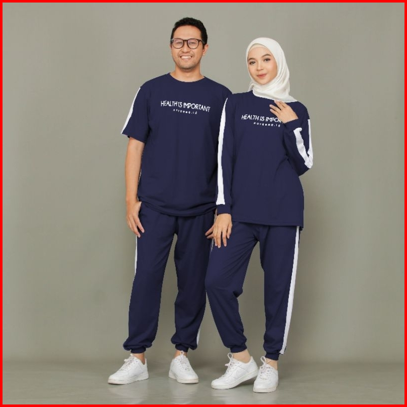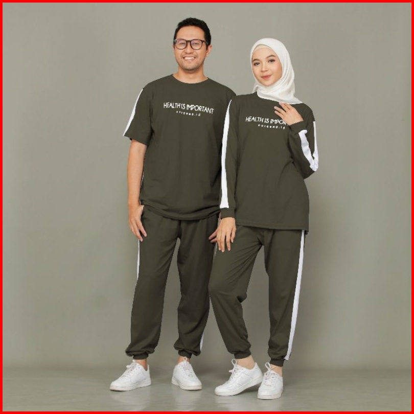 Setelan Baju Olahraga Wanita Dan Pria One Set Sport Couple Senam Joging Muslim By Mareema