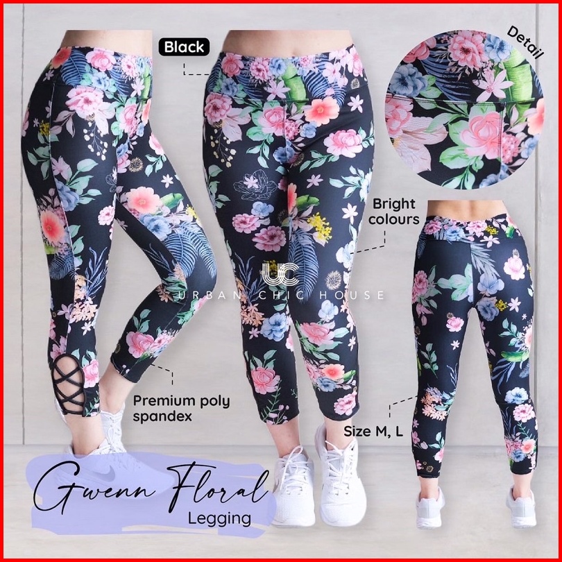 Urban -gwenn Floral Legging Olahraga Bunga-bunga M-xxxl