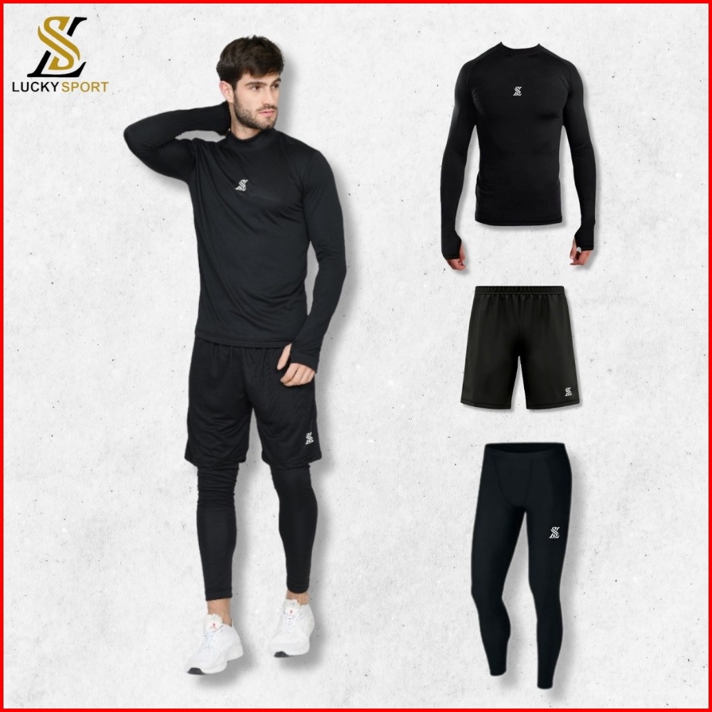 Baju Manset Legging Panjang Celana Pendek Pria Sport Olahraga Set Baselayer Gym Futsal Lari Murah