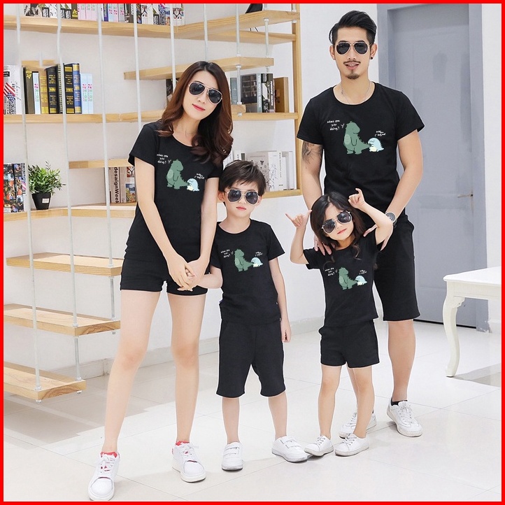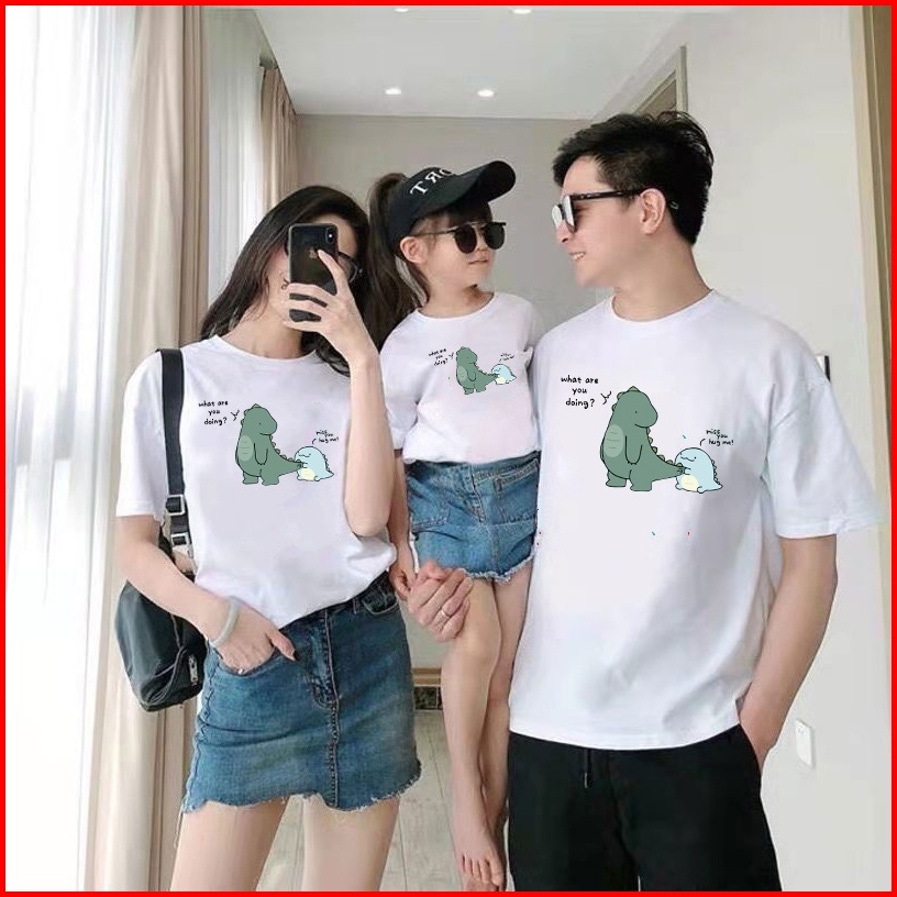 Kaos Fam Dino Bagus Couple Lengan Pendek Kapel Pacar Atasan Murah Kembar Pasangan Bapak Ibu Anak Oblong Katun Pria Wanit