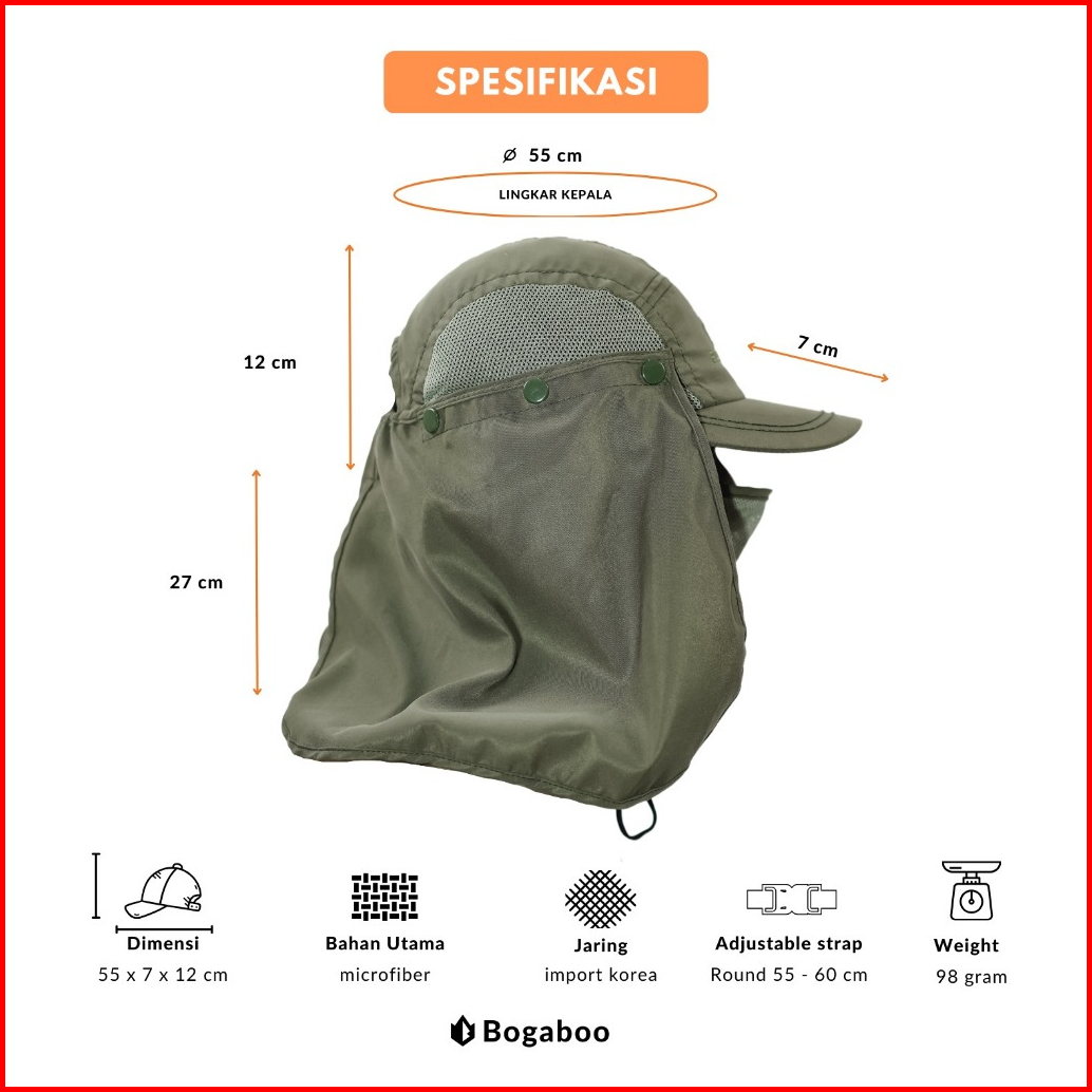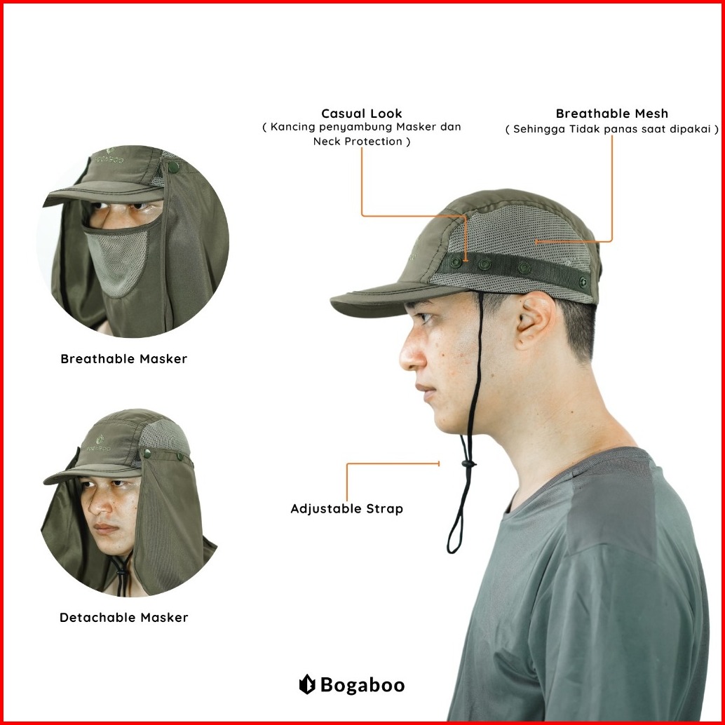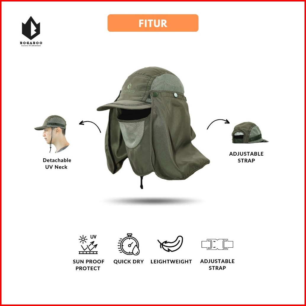 Bogaboo Topi Mancing Masker Jepang Microfibre Quickdry - Topi Mancing Anti Panas - Topi Pancing Anti Uv - Topi Gunung