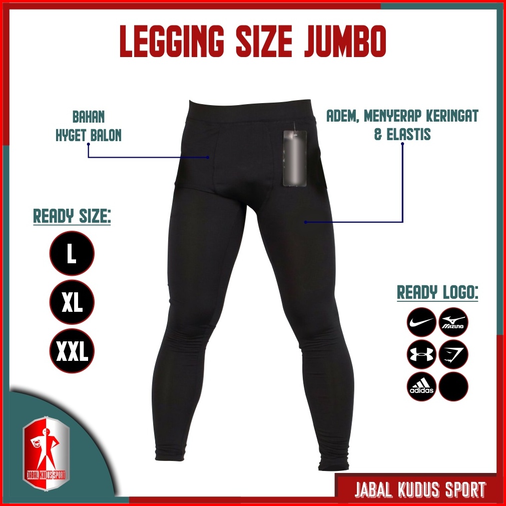 Leging Pria Sport Jumbo Celana Legging Lejing Olahraga Celana Manset Baselayer Futsal Sepak Bola Gym Outdoor Indoor Untu