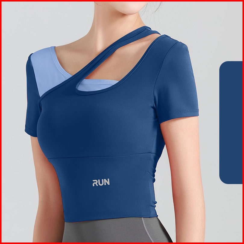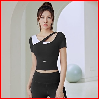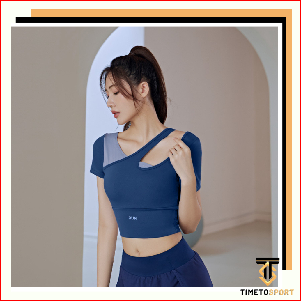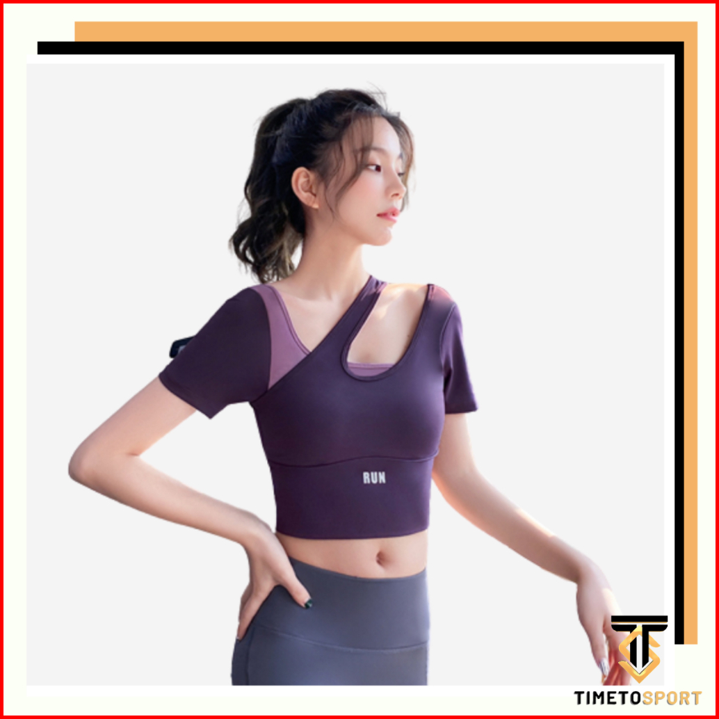 Timetosport Crop Top Baju Olahraga Yoga Sport Senam Pilates Zumba Short Sleeve Wanita 1135