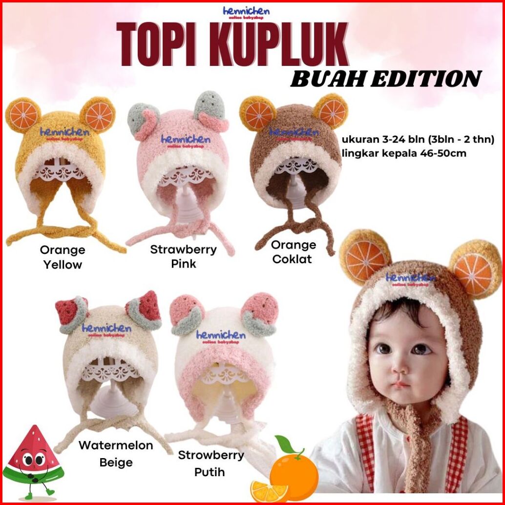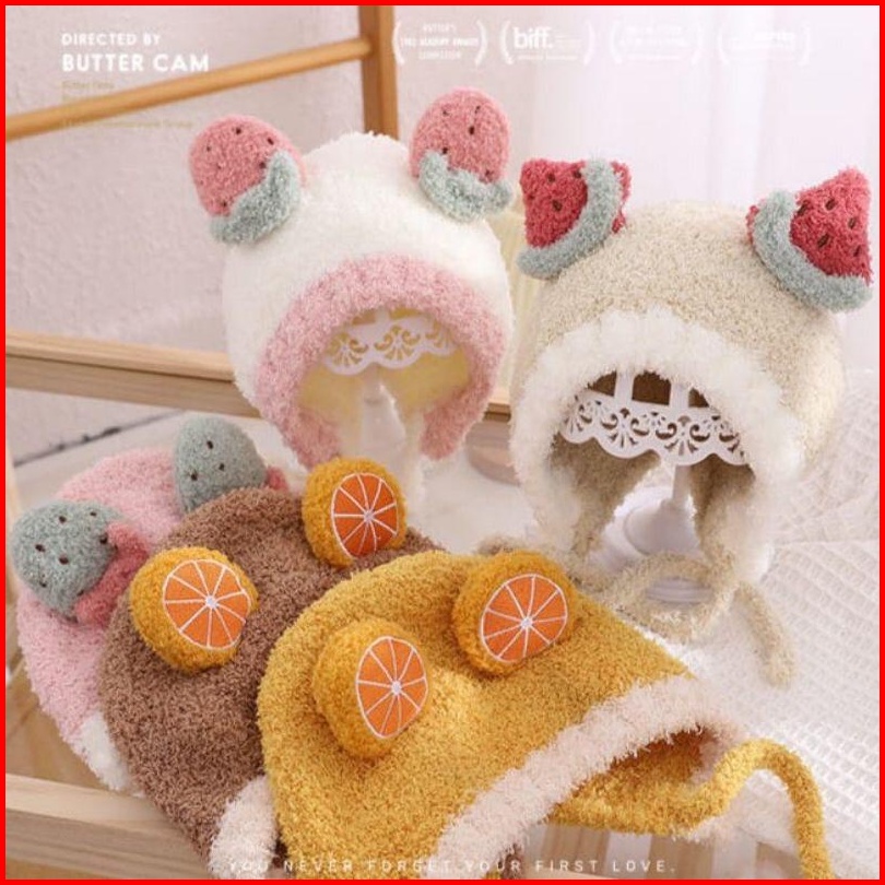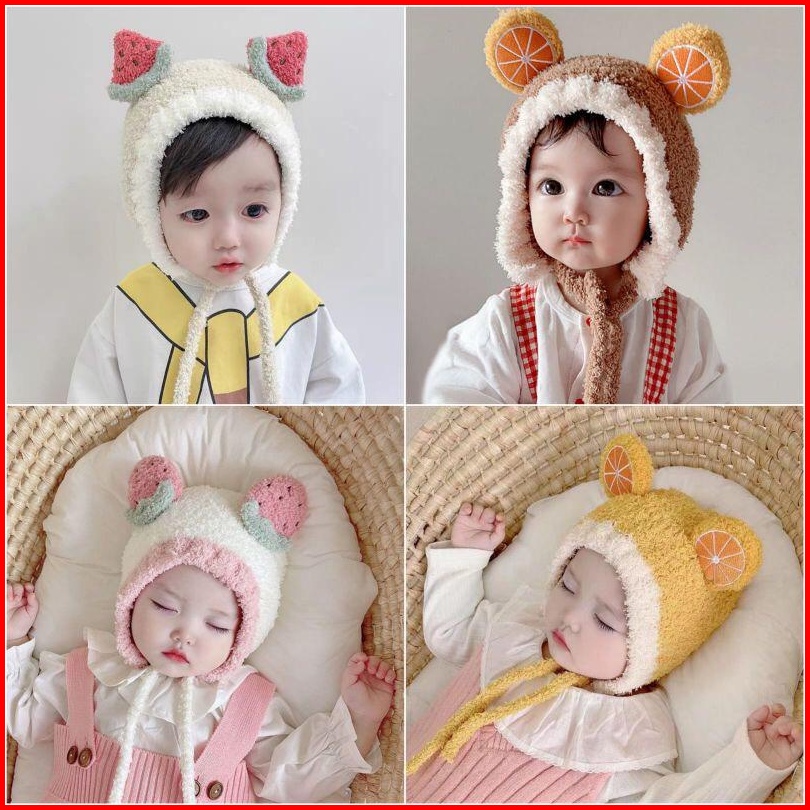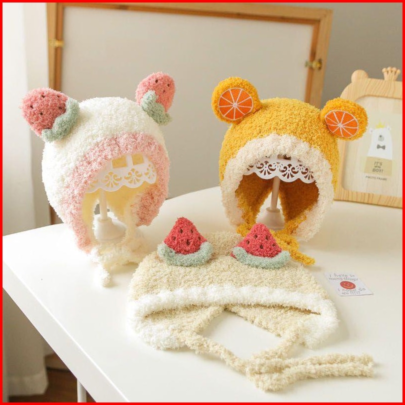 Topi Kupluk Rajut Fleece Hangat Kupluk Pom Buah Bulu Bayi Import