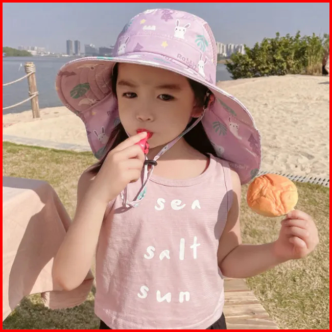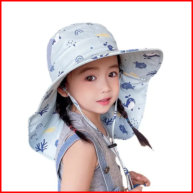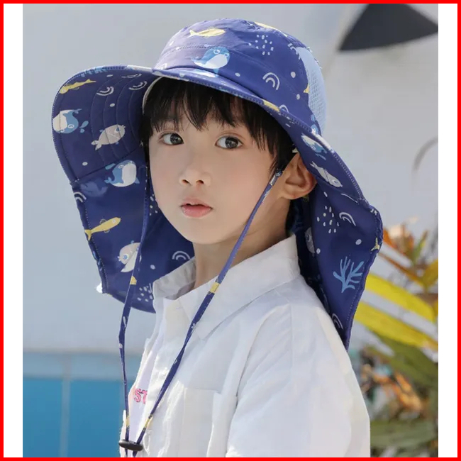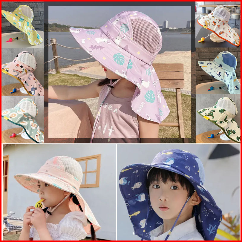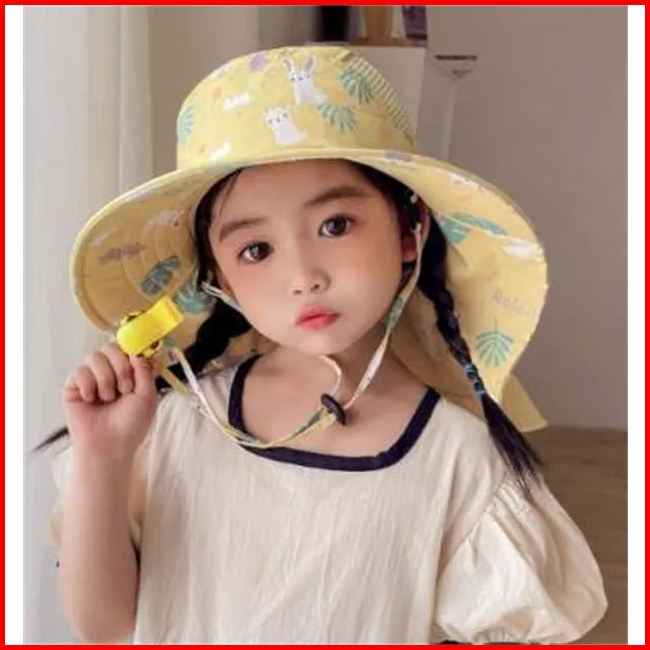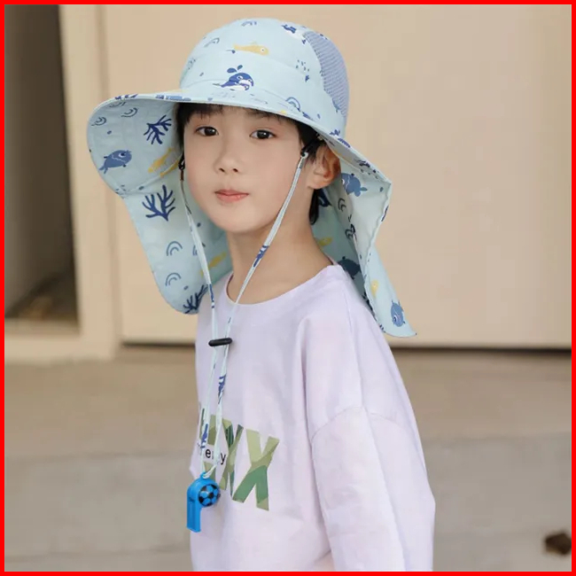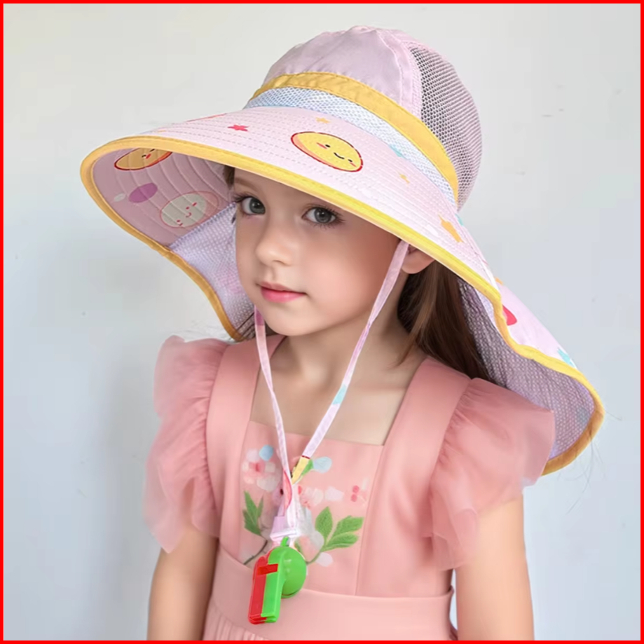 Topi Pantai Tepi Lebar Uv Protection Anti Panas Fisherman Style Boy Girl Beach Sun Panama Hat With Whistle