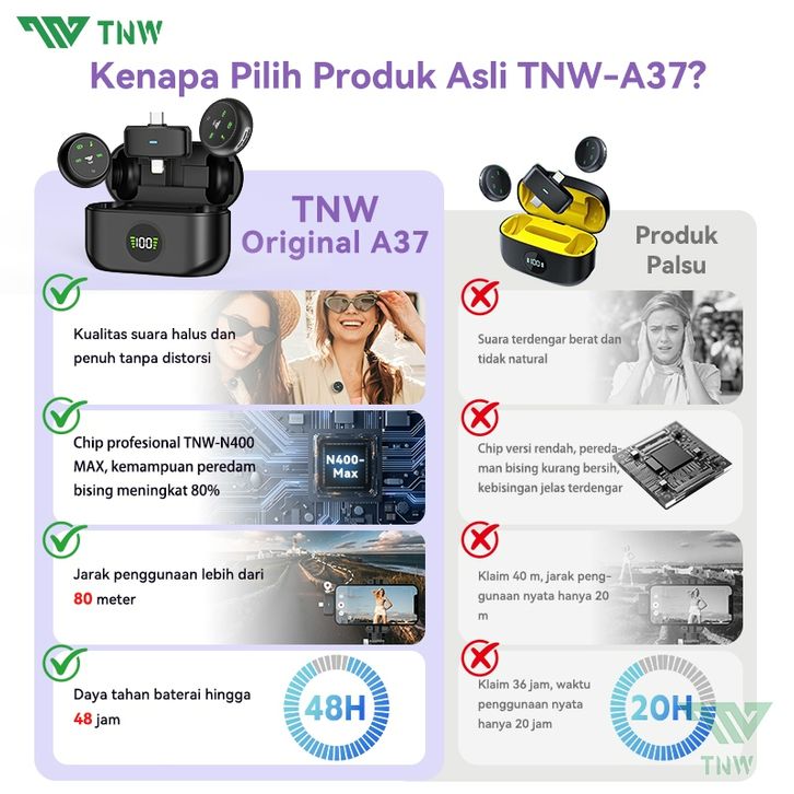 [Mall] MICROPHONE 2-IN-1 CLIP ON TNW A37 WIRELESS MIC MAGNETIC MIKROFON HP PLUG & PLAY DUAL LAVALIER MICROPHONE