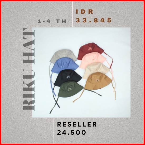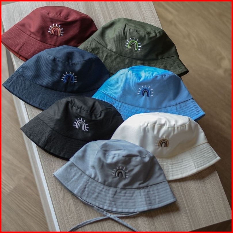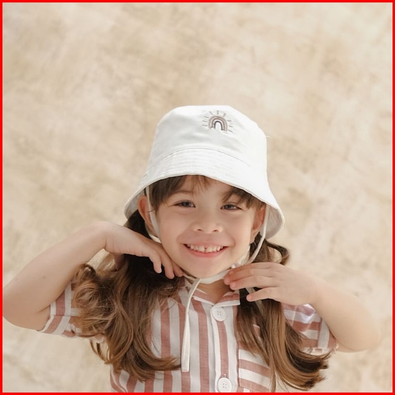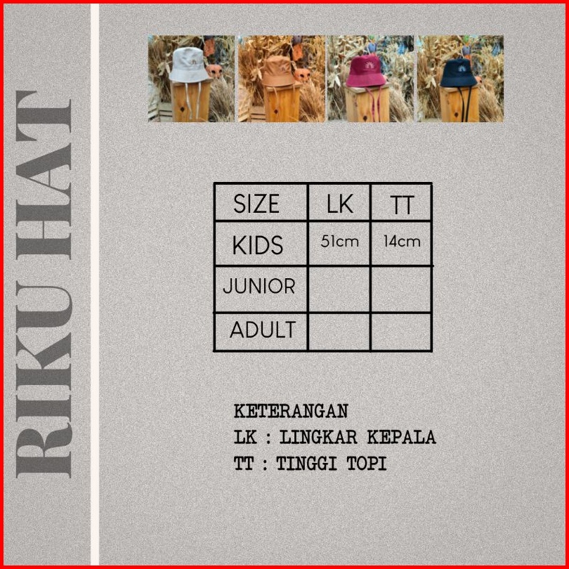 Riku Hat - Promo 11.11 Bucket Hat Polos Anak Topi Tali Bordir Cewe Cowo Laki Perempuan Korea Drill Lucu Murah