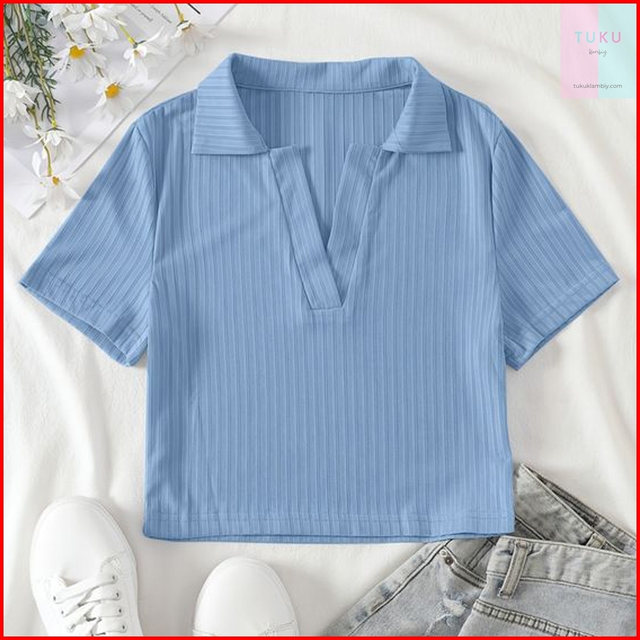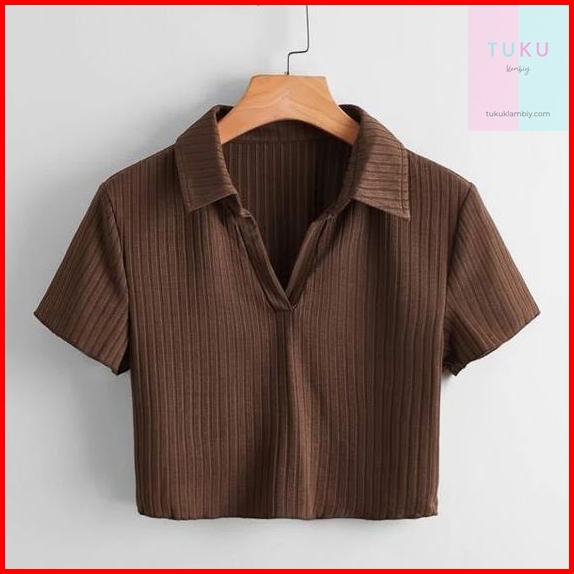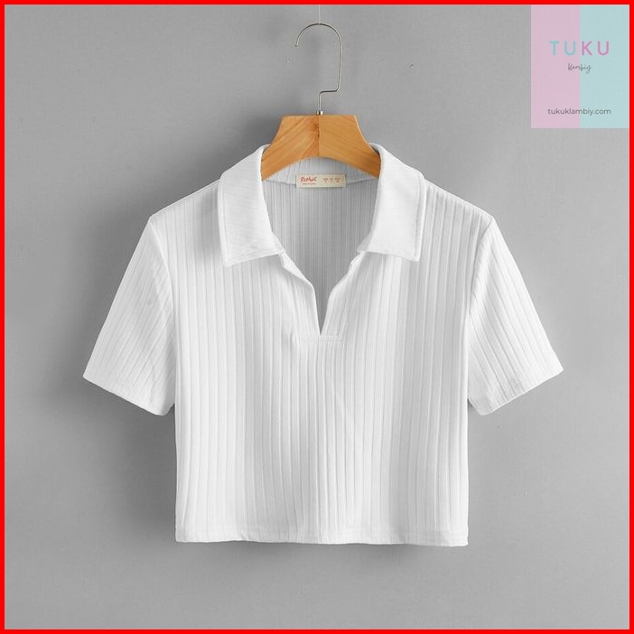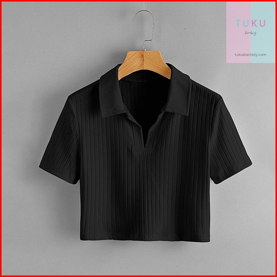 Tukuklamabiy Knit Top Krah 017 - Kaos Pendek Wanita Knit Rib - Kaos Polo Crop