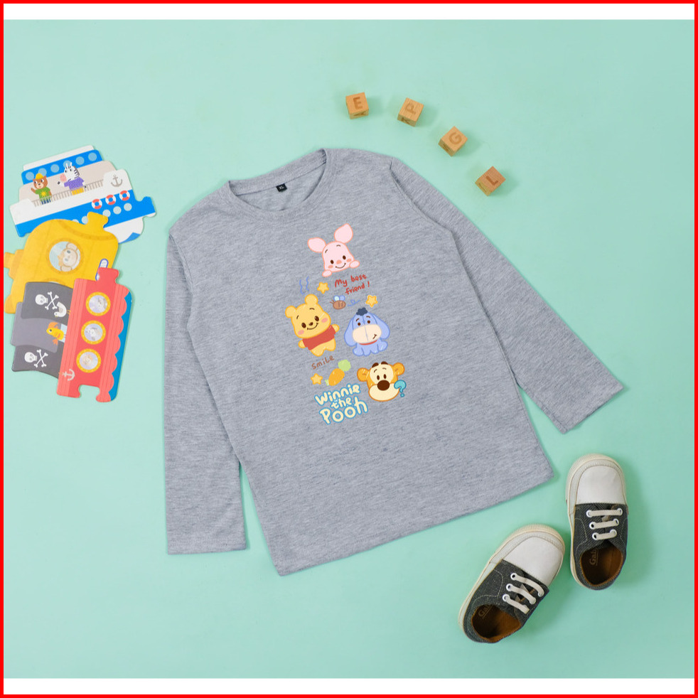 Baju Kaos Winnie The Pooh Anak Lengan Panjang Usia 1-12 Tahun Kaos Distro Anak Laki Laki Perempuan Kaos Import Anak Pere