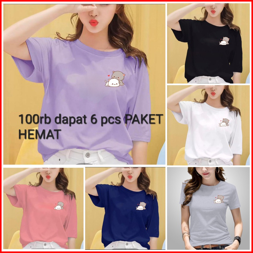 Kaos Wanita 100rb Dapat 6 Pcs Kaos Atasan Wanita Motif Terbaru Bahan Bebyterry