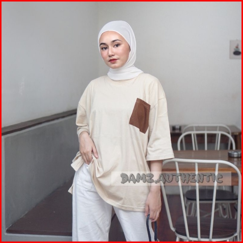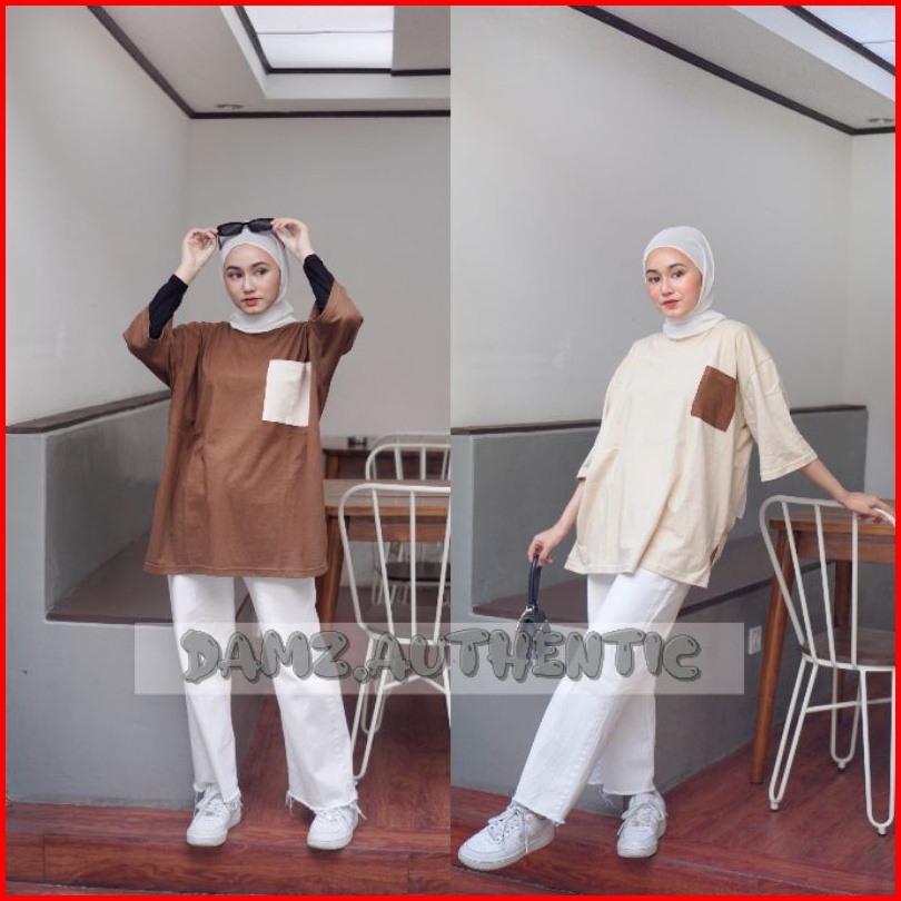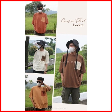 Kaos Oversize Pocket Saku Cewek Cowok Browny Dan Cream. Unisex Kaos Jumbo Bigsize Besar