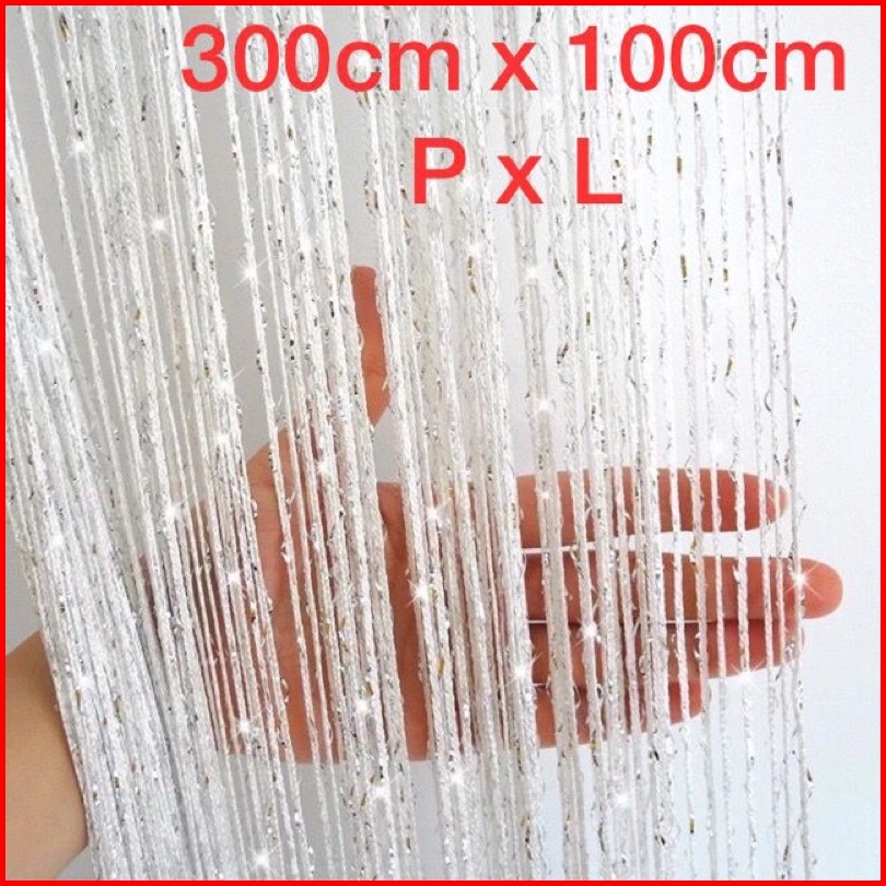 Tirai Benang Putih Gliter Putih 3meter Tirai Pintu Tirai Dekorasi Tirai Penyekat Ruangan