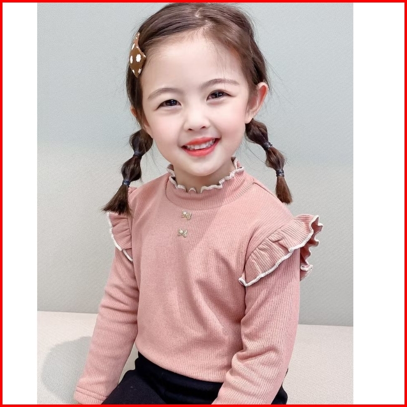 Atasan Kaos Tangan Panjang Anak Perempuan Korean Style Bahan Knits Untuk Usia 2-7 Tahun Kaos Polos Anak Cewek Premium