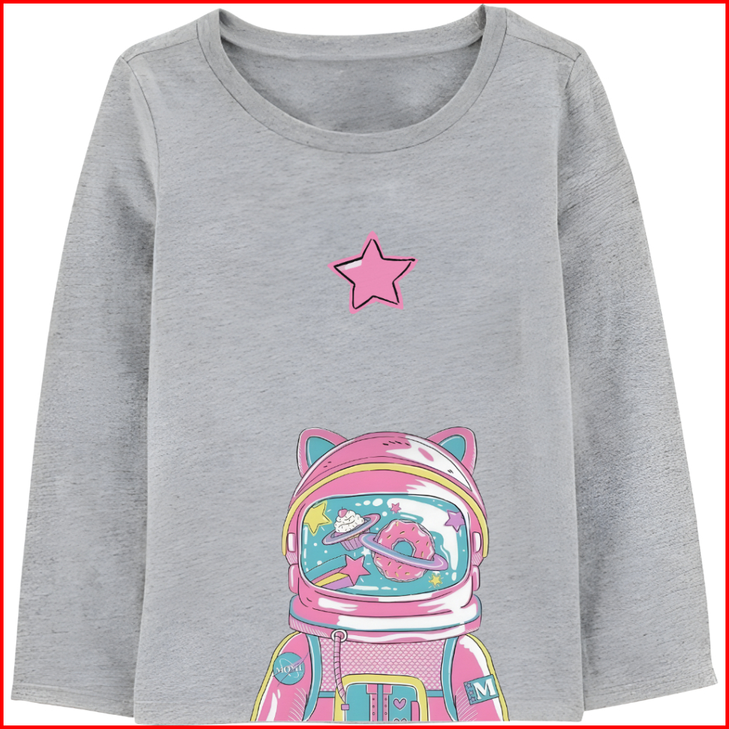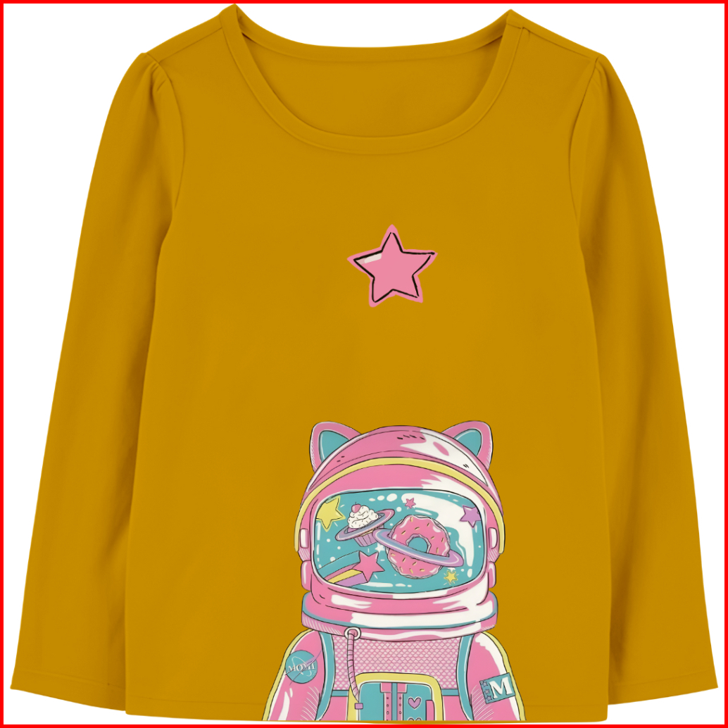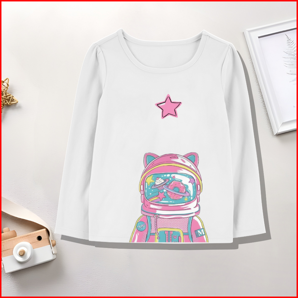 Kaos Panjang Anaka Perempuan Cewek 1-12 Tahun Kaos Astronot Anak Perempuan Kaos Lucu Anak Perempuan