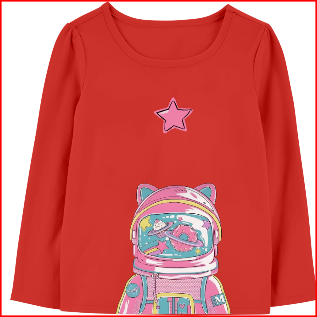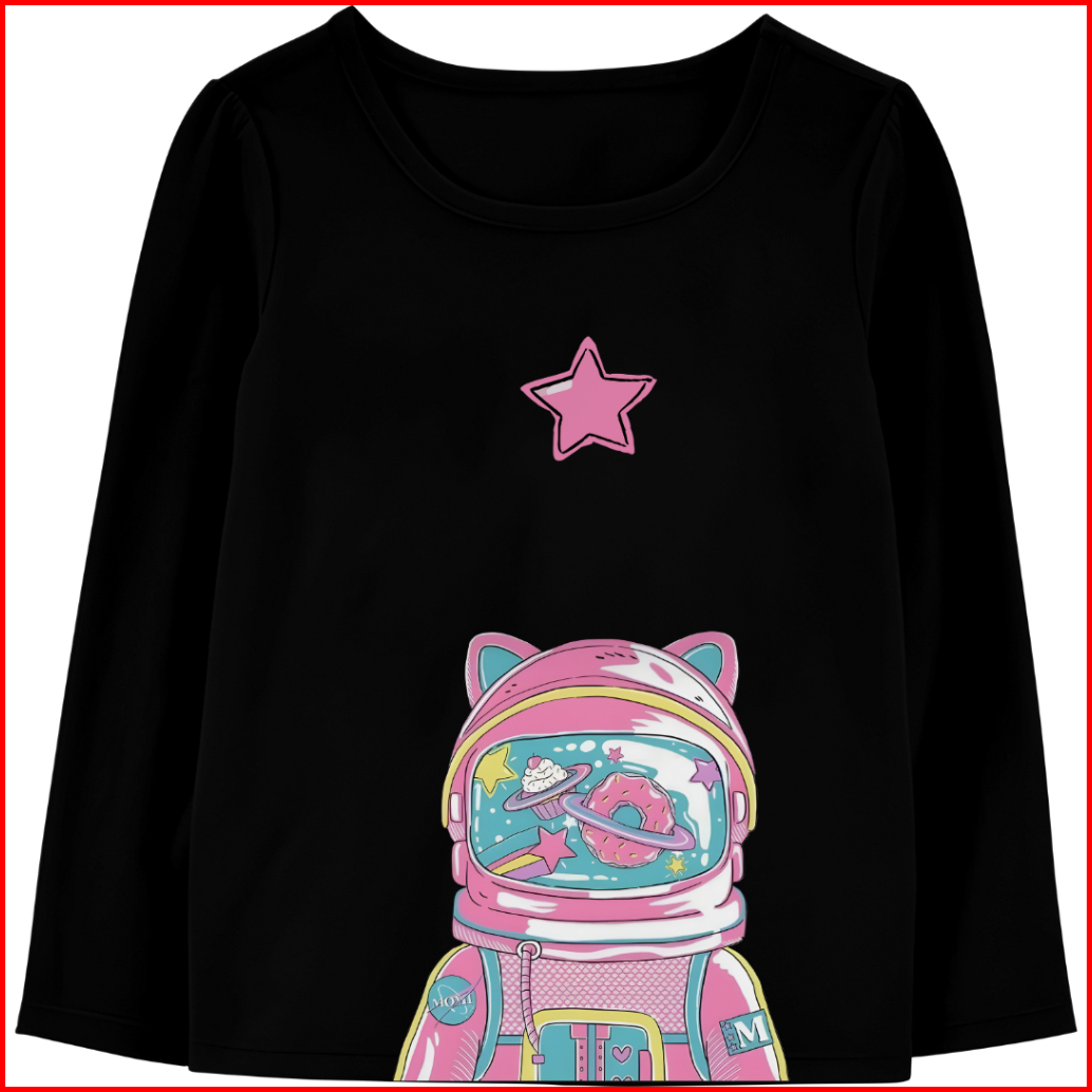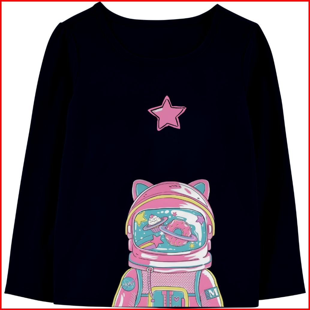 Kaos Panjang Anaka Perempuan Cewek 1-12 Tahun Kaos Astronot Anak Perempuan Kaos Lucu Anak Perempuan
