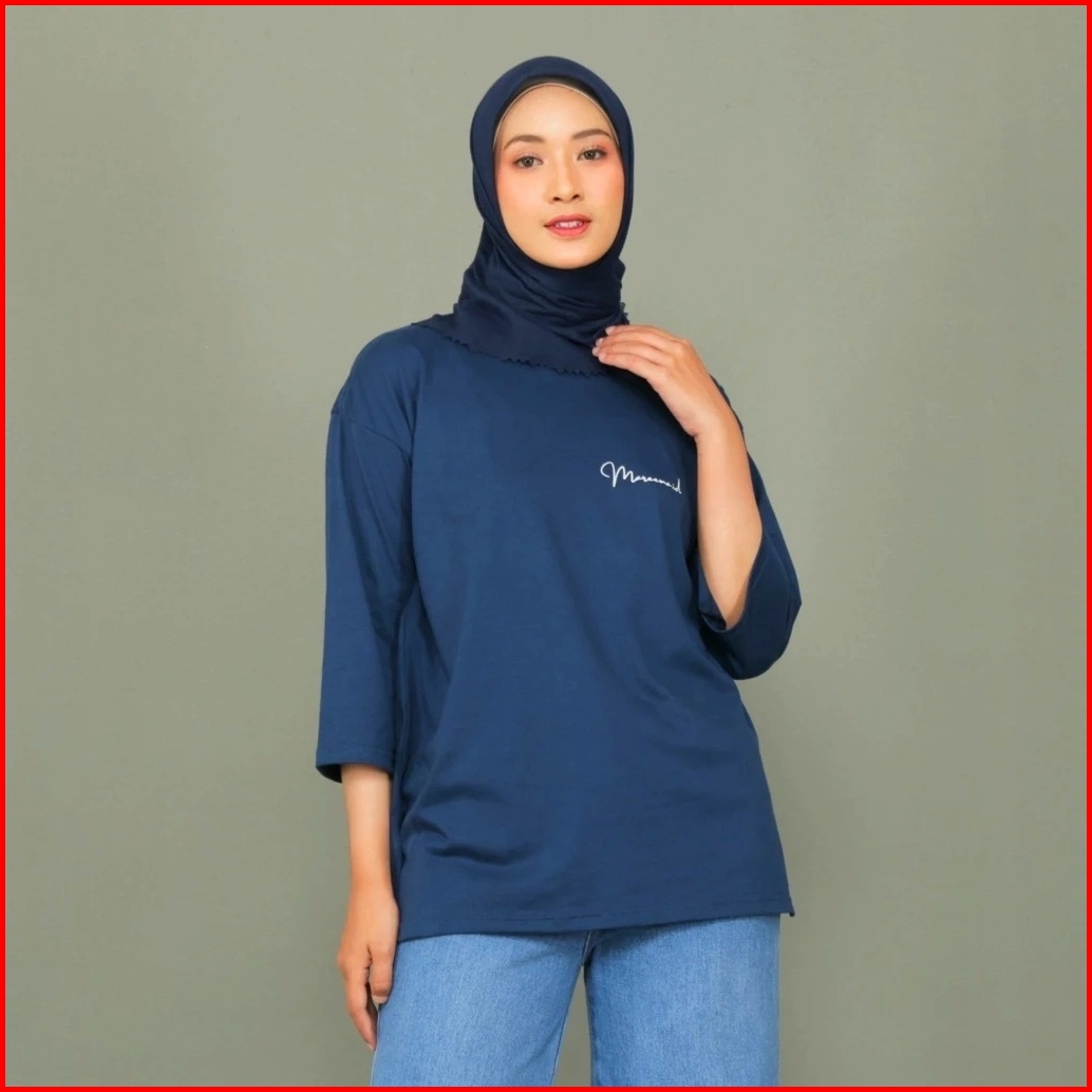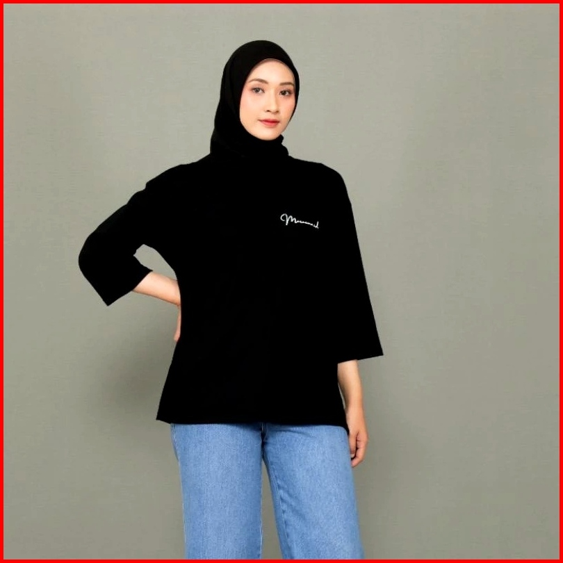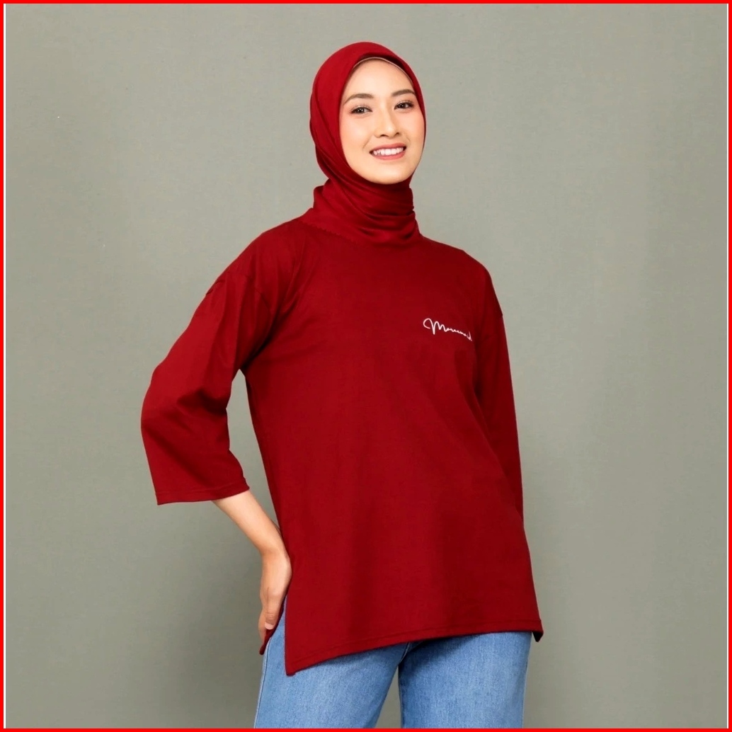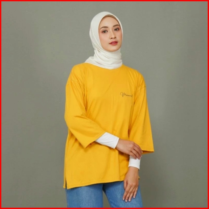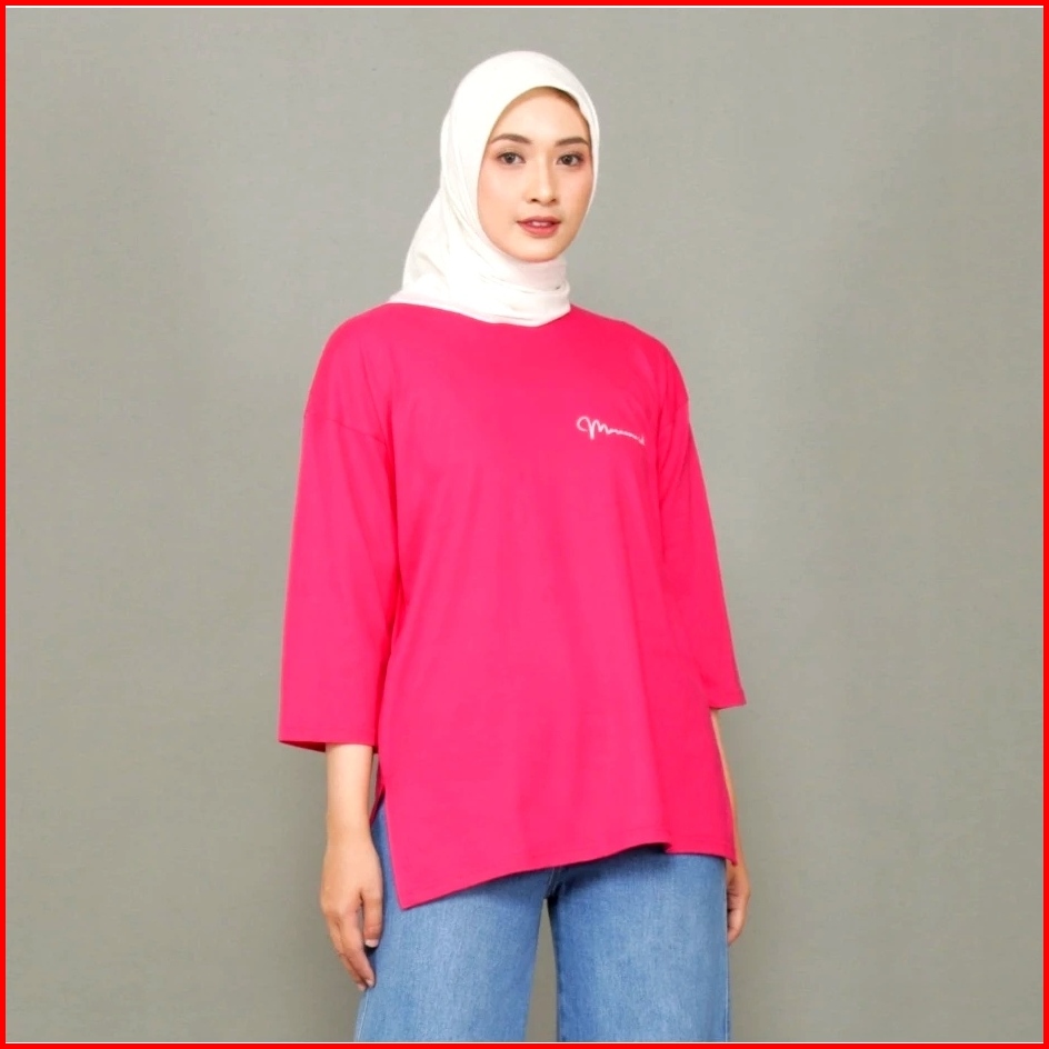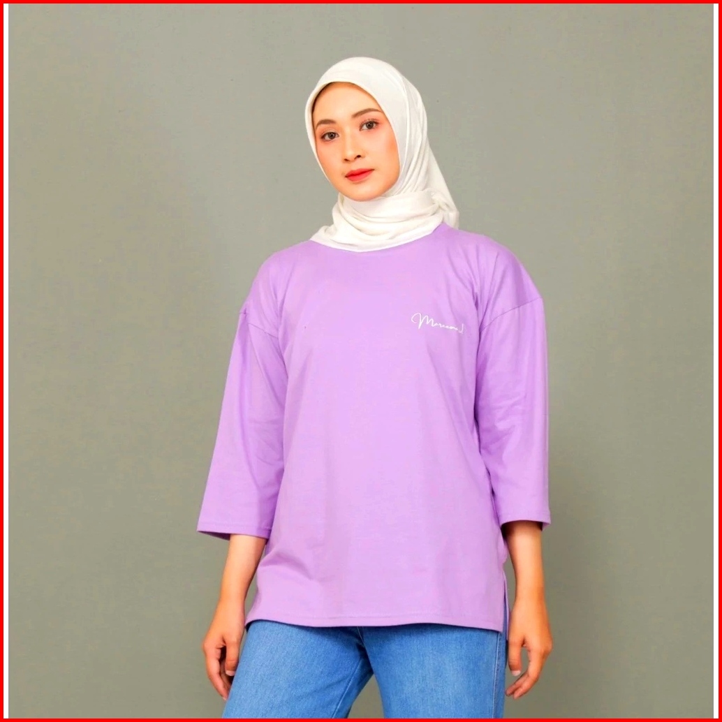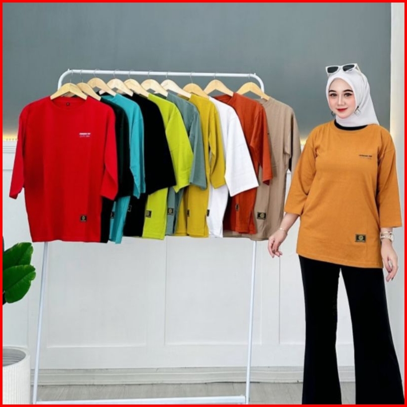 Atasan Kaos Oversize Wanita Lengan 7 8 Top Basic Polos Cotton Combed 24s Full Size M-l-xl-xxl-xxxl