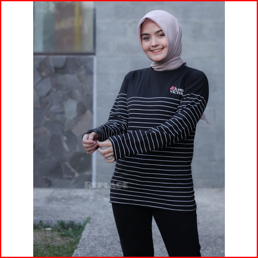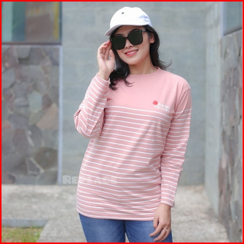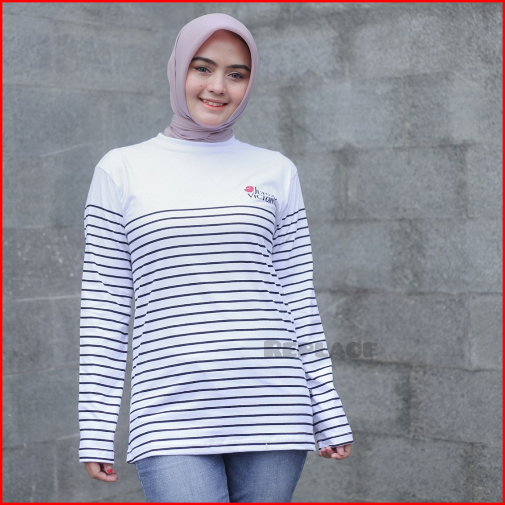 Kaos Salur Lengan Panjang Kaos Setrip Atasan Wanita Terbaru Bahan Cotton 24s