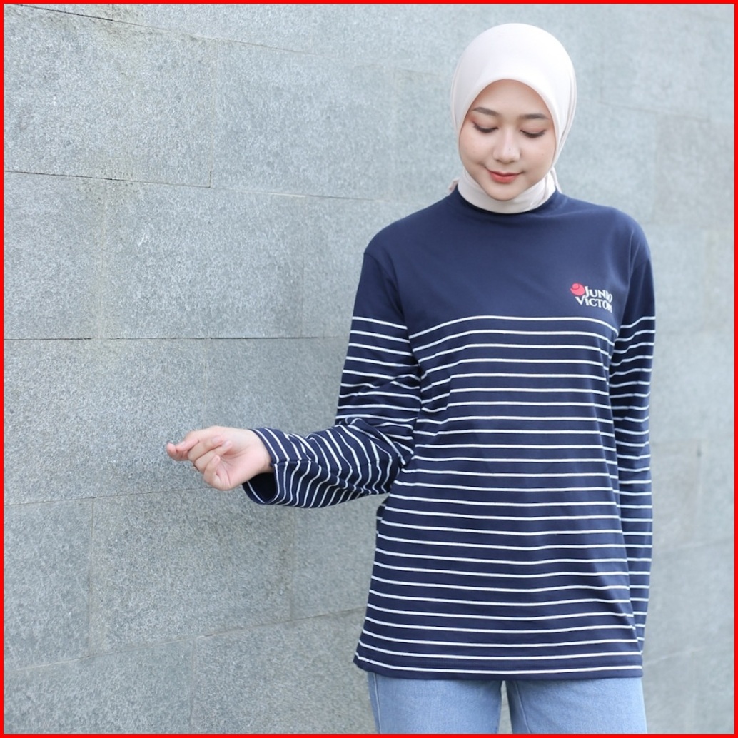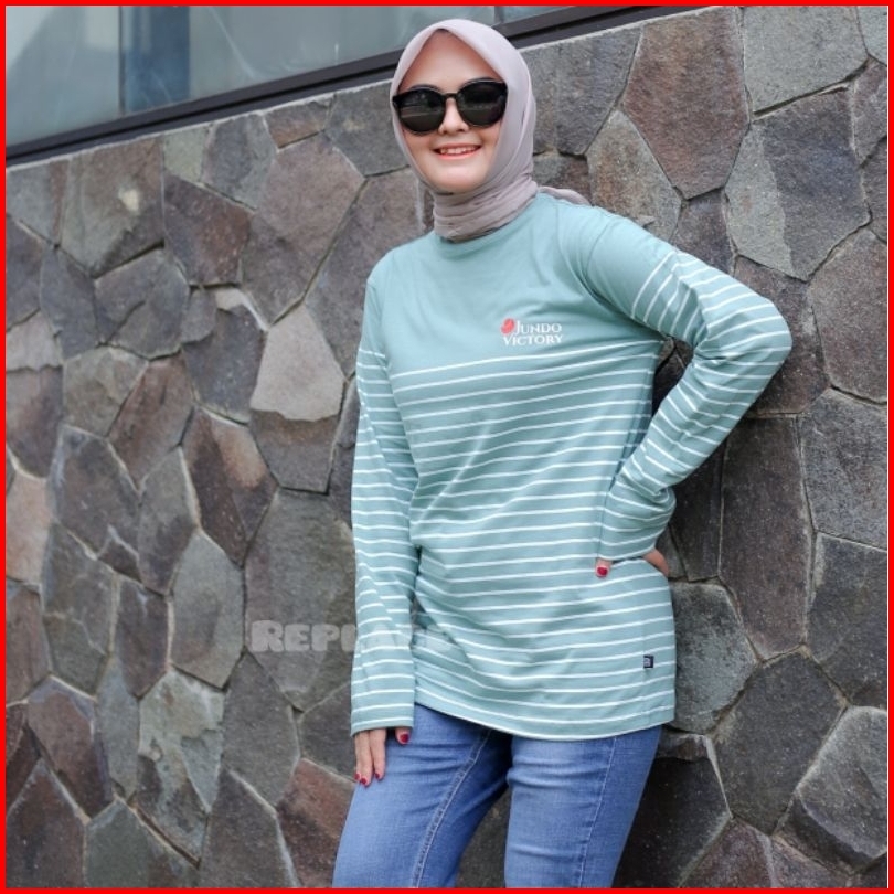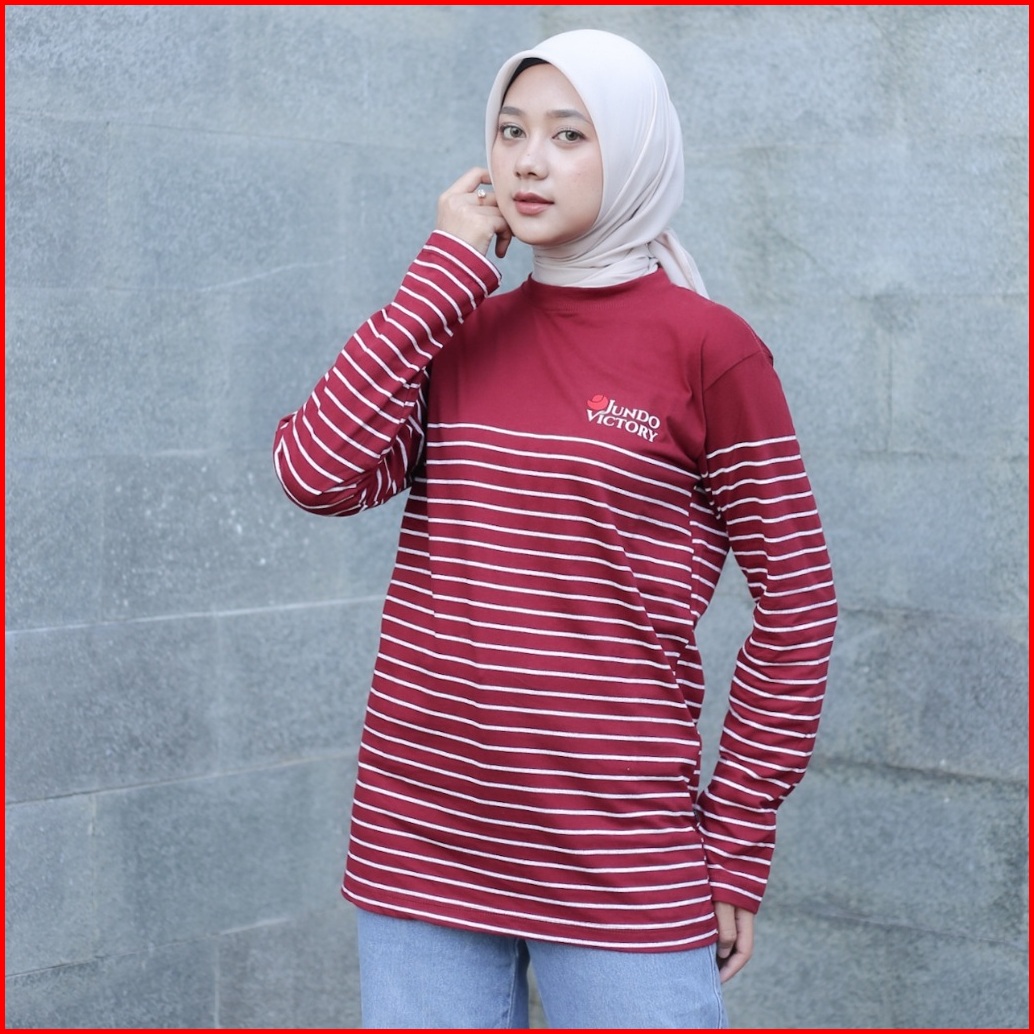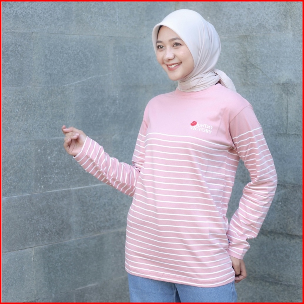 Kaos Salur Lengan Panjang Kaos Setrip Atasan Wanita Terbaru Bahan Cotton 24s