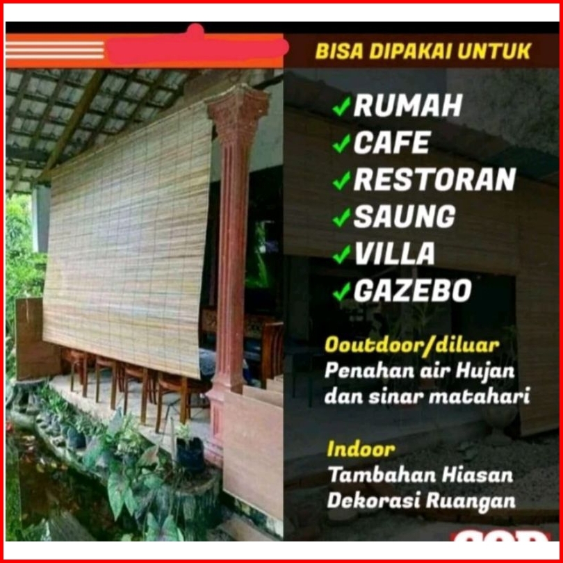 Tirai Bambu Krey Sawit Outdoor Termurah Uk 2x2 Tali Dn Kerekan Ring Besi