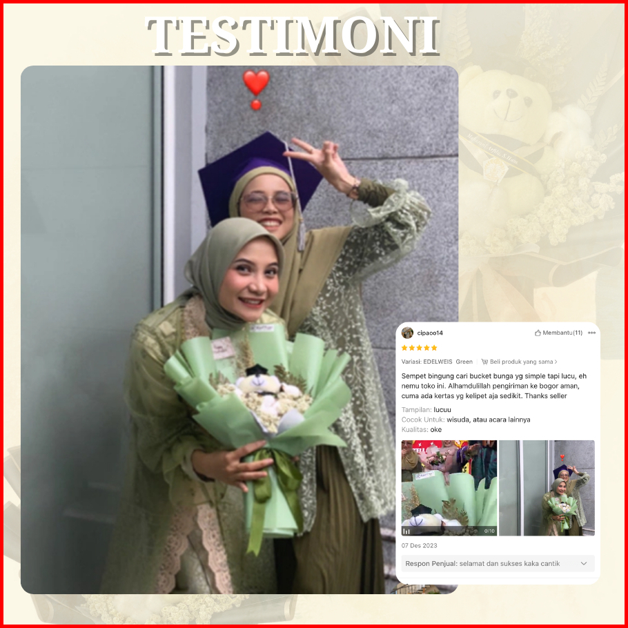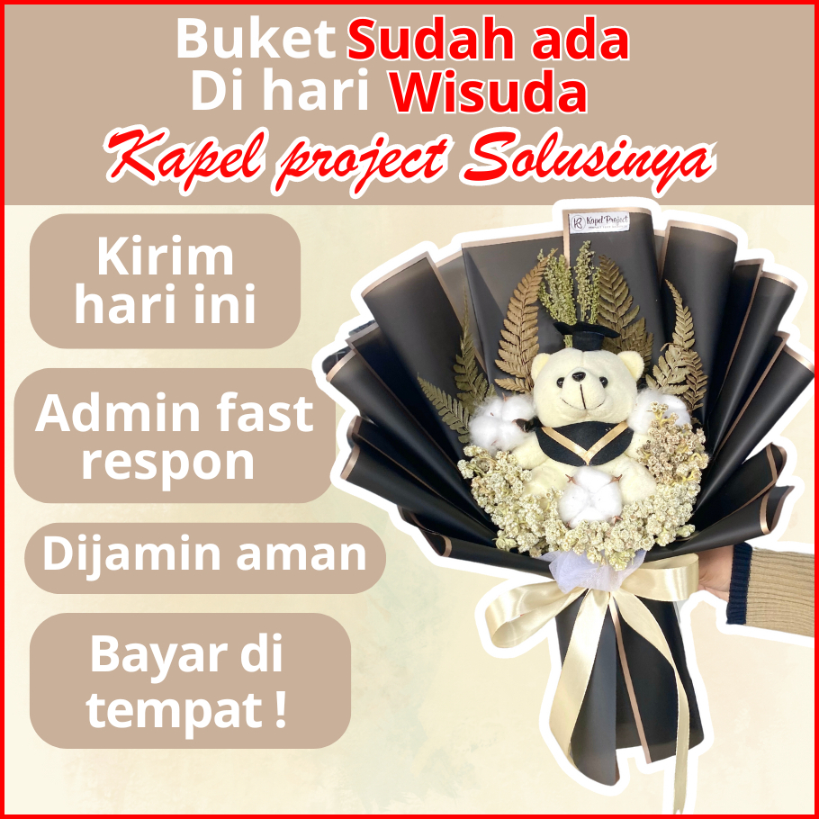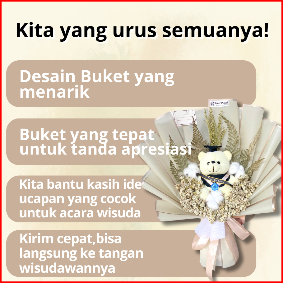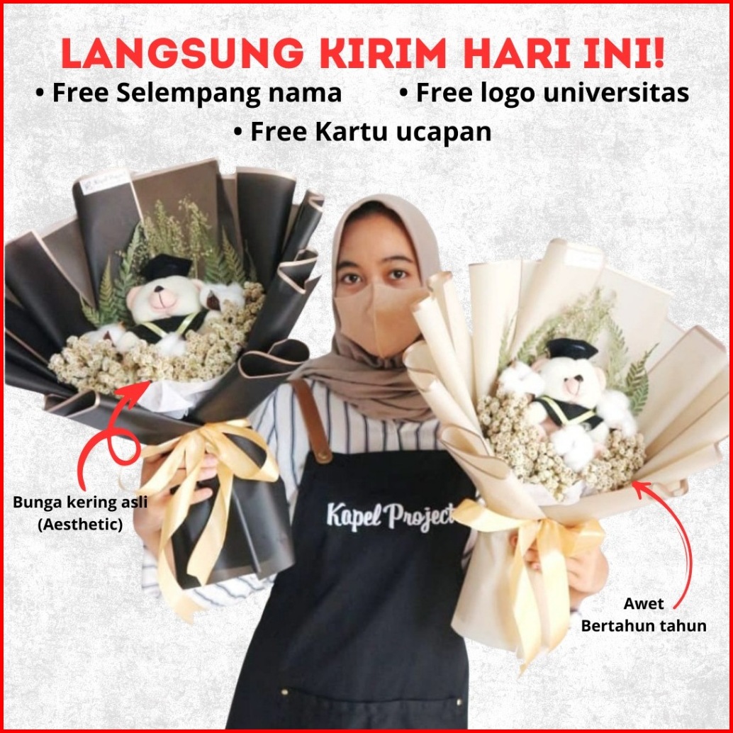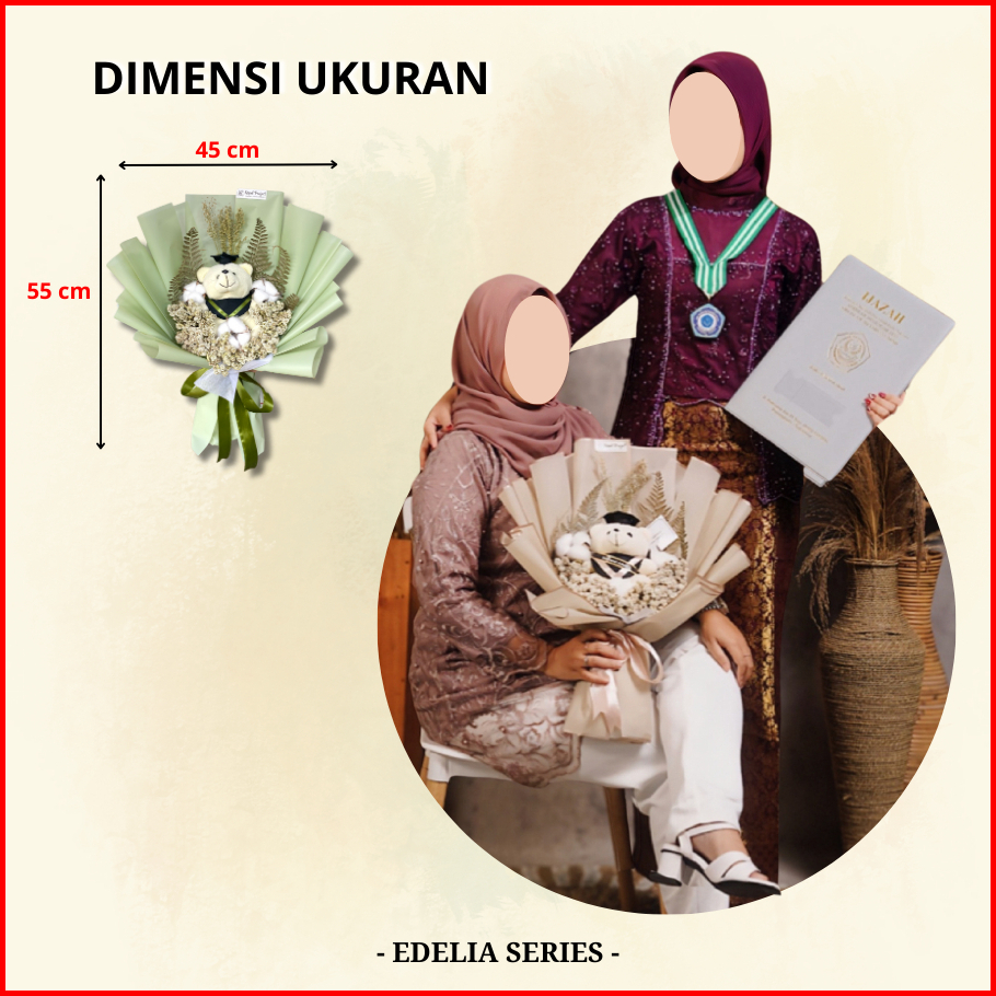 Buket Boneka Wisuda Bunga Kering Graduation Sidang Skripsi Perpisahan Kelulusan Cewek Cowok Sd Smp Sma Kuliah - Edellia
