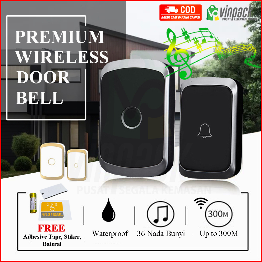 Bel Rumah Tanpa Kabel Waterproof Bel Rumah Wireless Waterproof Ip44 Door Bell Wireless Pintu 1 Receiver Bel Pintu Rumah