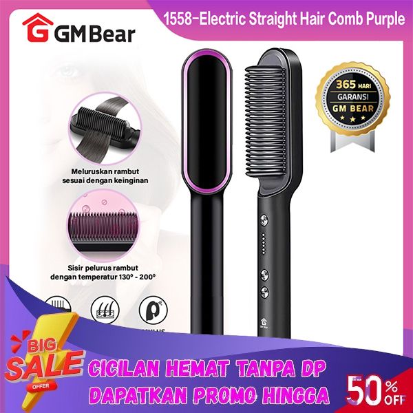 [Mall] GM Bear Catokan Sisir Pelurus Rambut Elektrik 1558 - Hair Straightener Curler 2 in 1