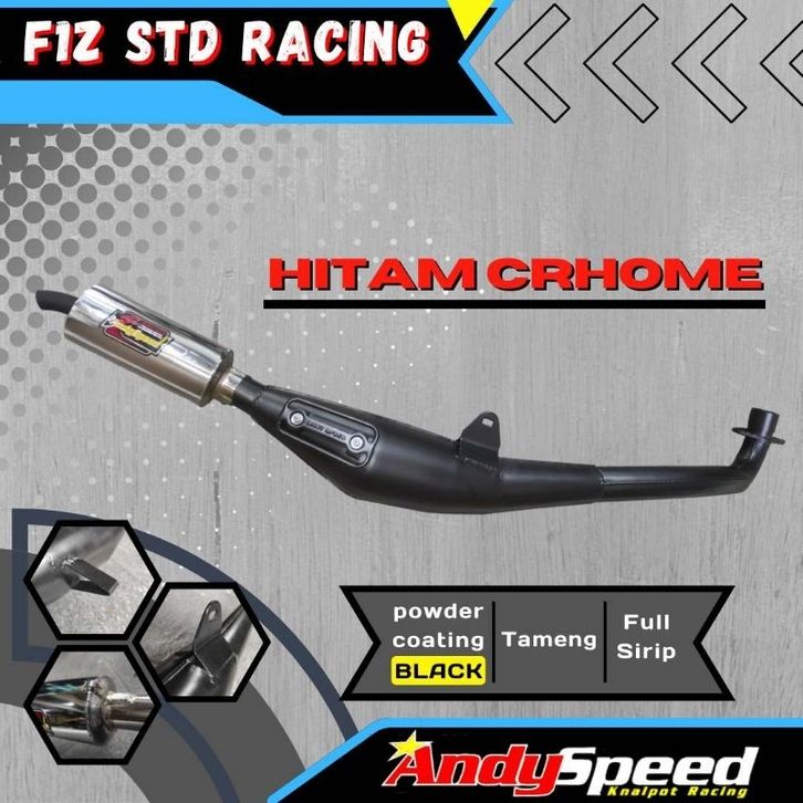 Knalpot FIZ FIZR FORCE1 F1Z F1ZR SIGMA ALFA MODEL STANDAR RACING KROM/PLAT KARAT/HITAM merk andy speed