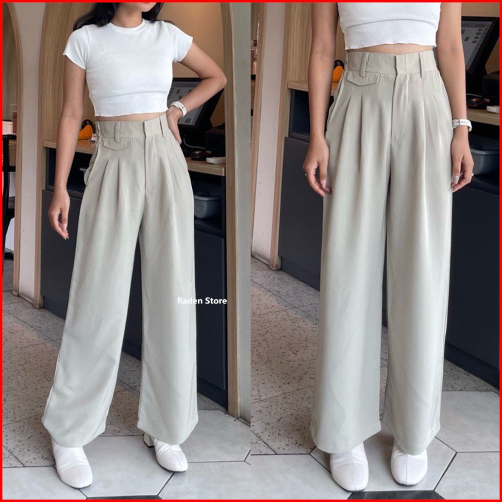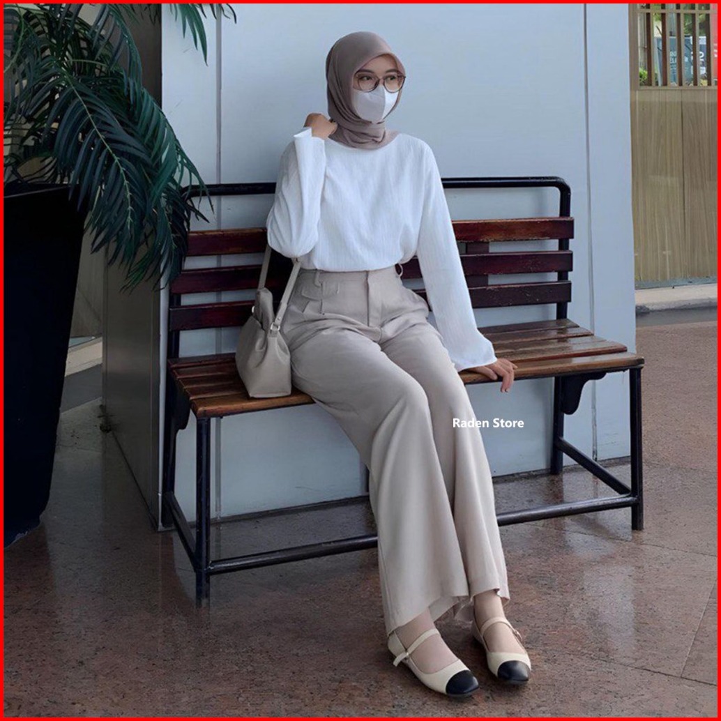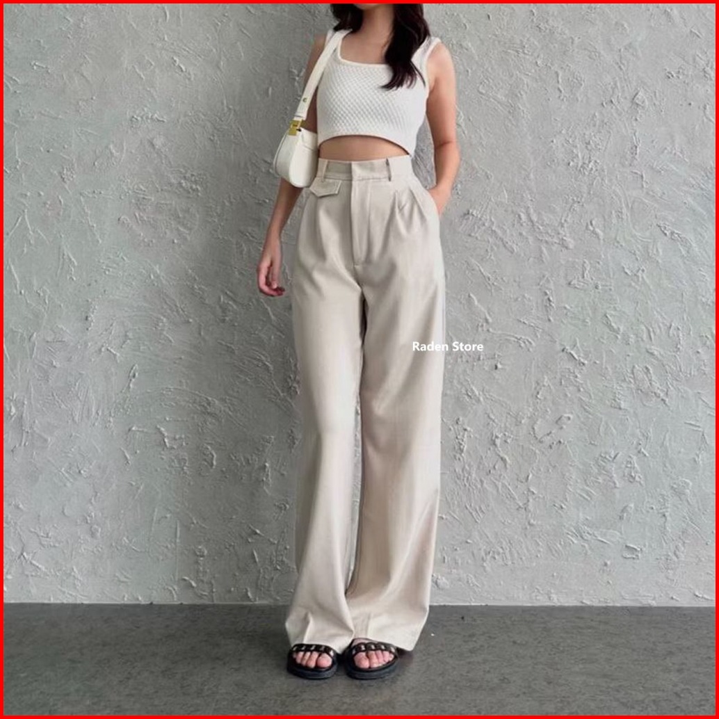 Oro Pants Loose Pants Trousers Wanita Highwaist Celana Anti Kusut Celana Kulot Wanita