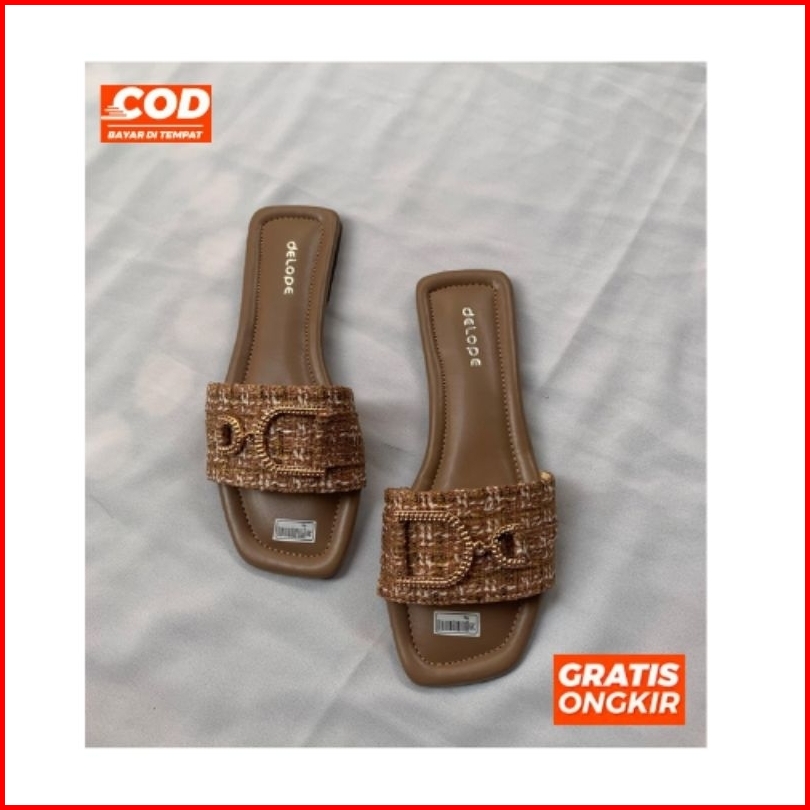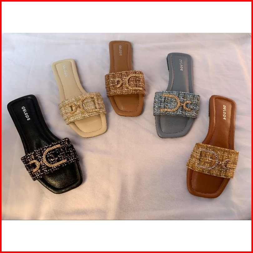 Delope Rjt - Sandal Teplek Flat Sandal Slide Sandal Wanita Rajut Terbaru