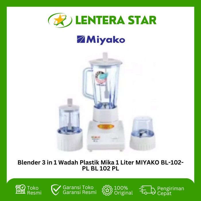 blender miyako Blender 3 in 1 Wadah Plastik Mika 1 Liter MIYAKO BL-102-PL BL 102 PL