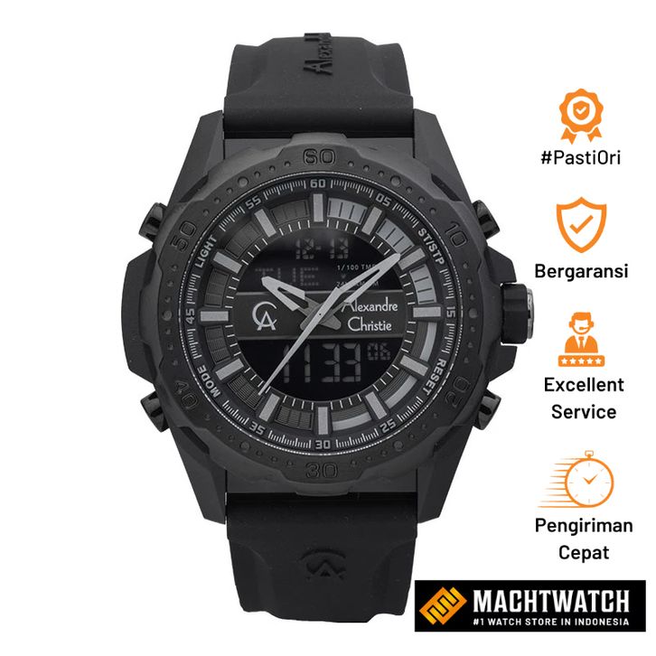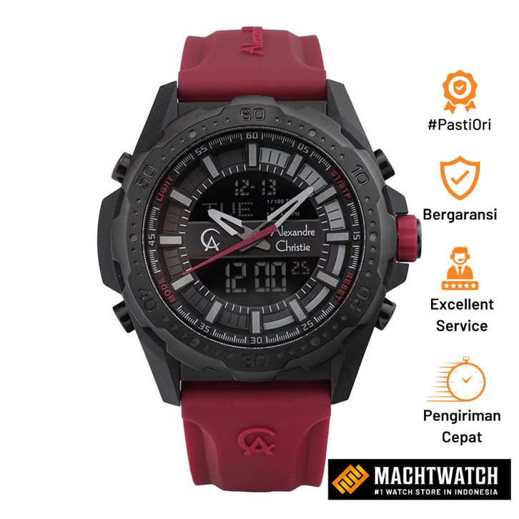 Jam Tangan Pria Alexandre Christie Digi AC 9370 MH RIPBARE Men Digital Analog Dial Red Rubber Strap