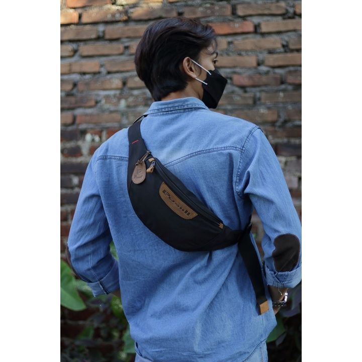 Pusiill-Waistbag Pria dan Wanita/Tas Selempang kombinasi kulit sapi Asli/ Tas Pinggang A05