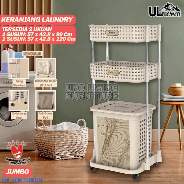 Laundry Basket Jumbo Stainless Steel Rak Keranjang Baju Kotor