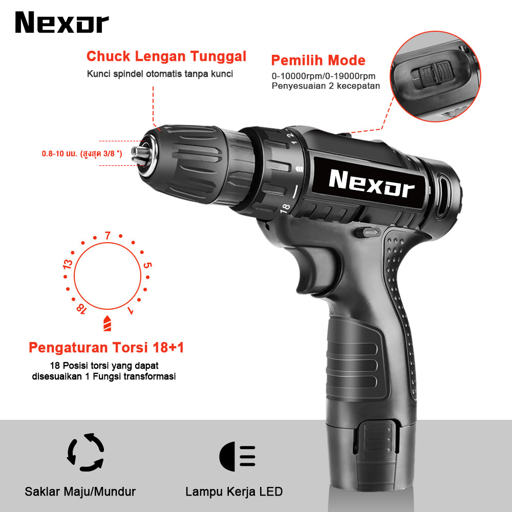 MESIN BOR BATERAI TANGAN 98V CORDLESS DRILL BATTERY IMPACT DRILL NEXOR
