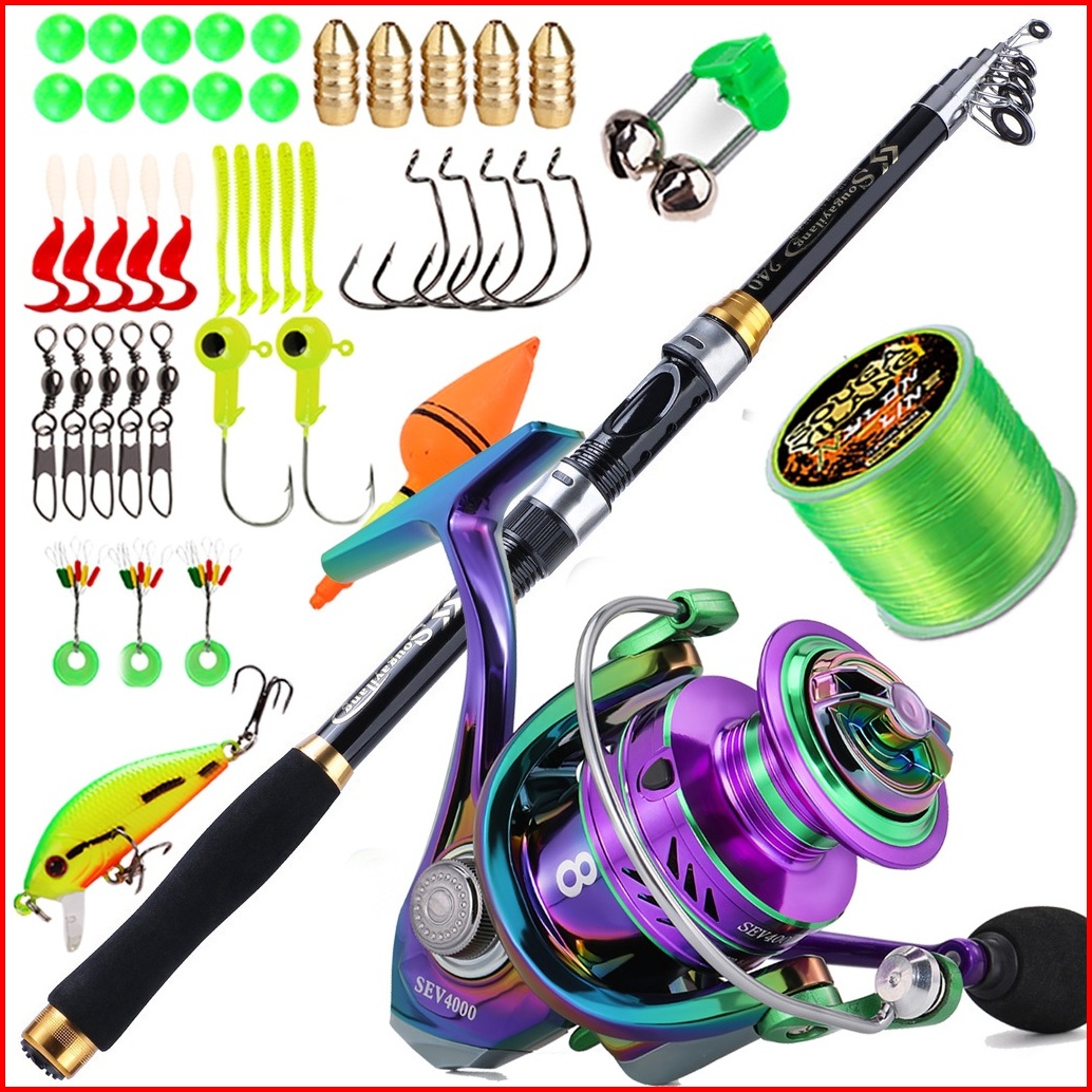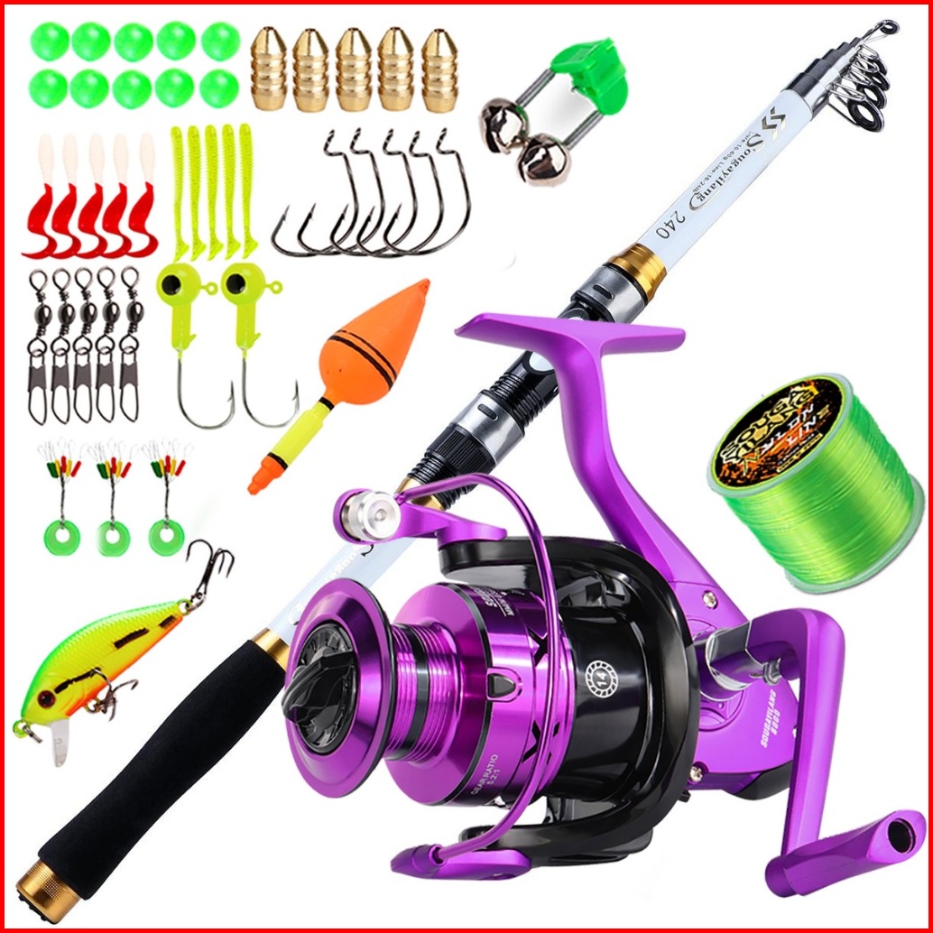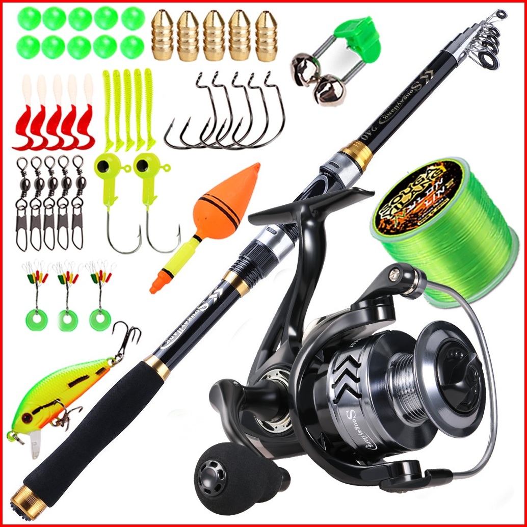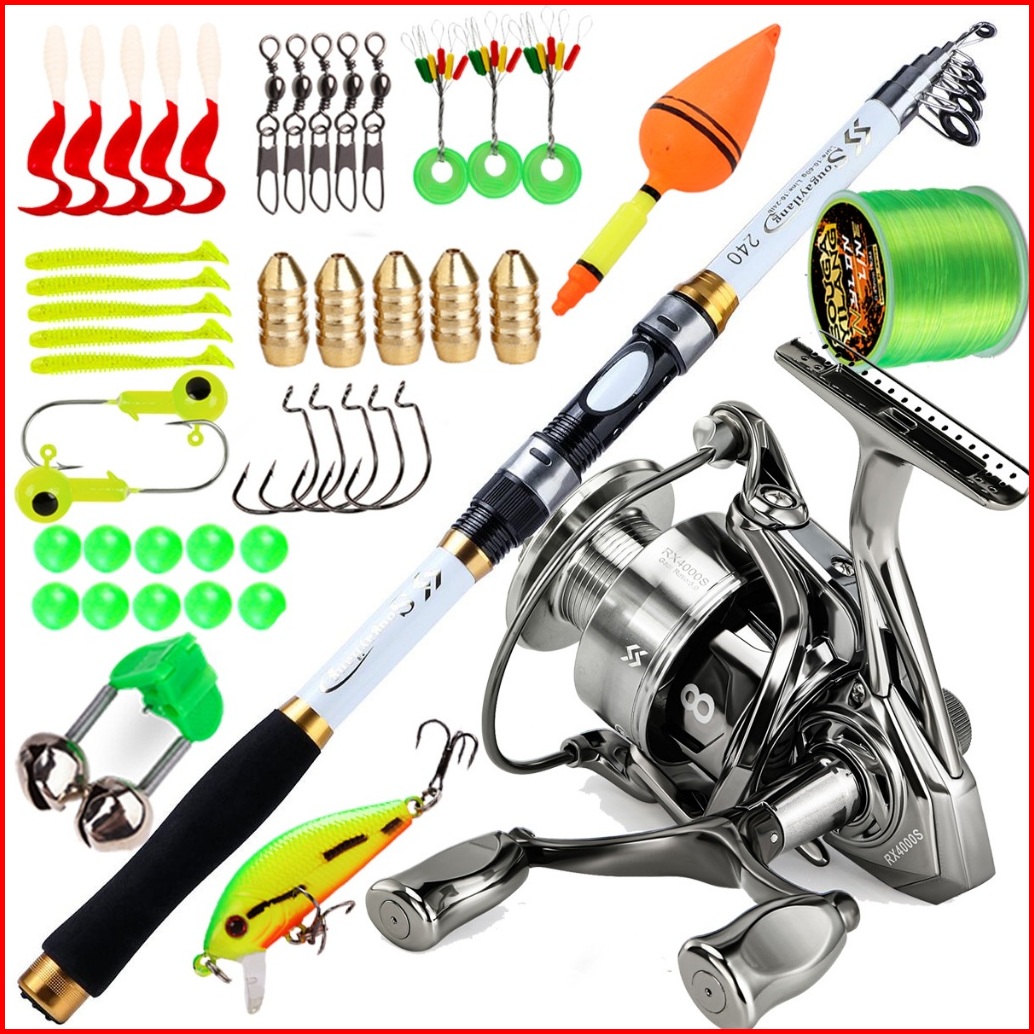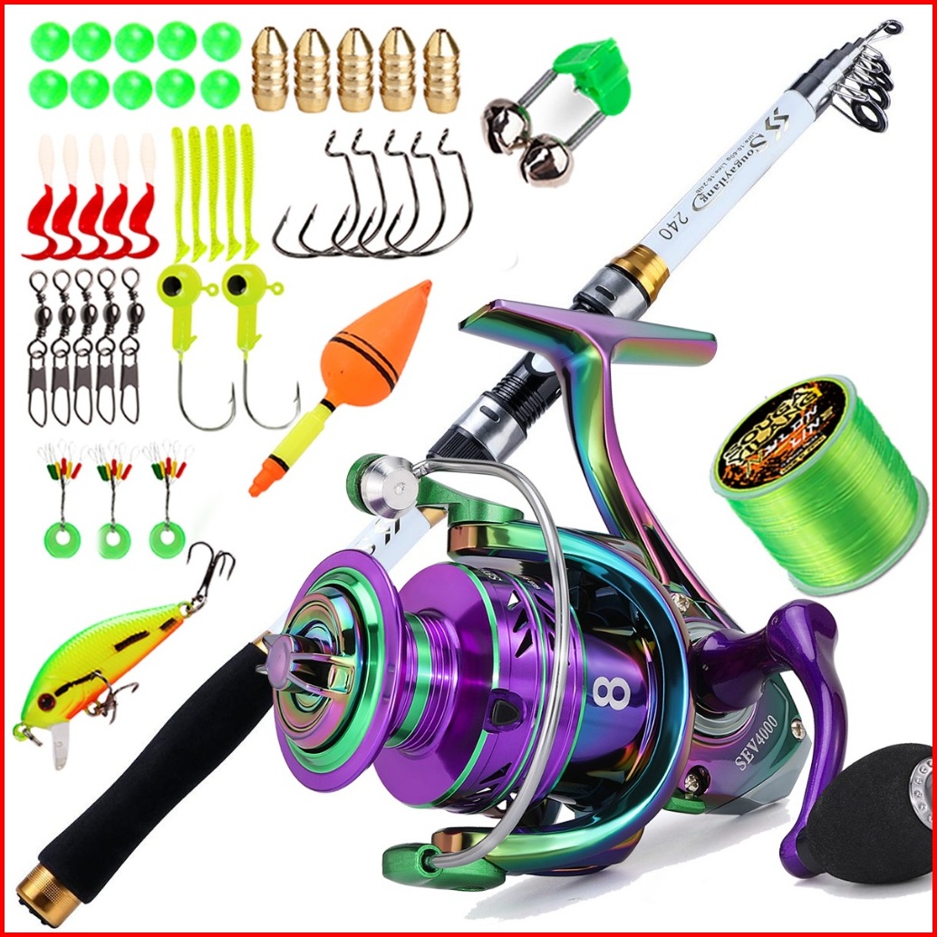 Pancing Set 1.8m-3.0m Joran Pancing Kaca Serat Teleskopik Joran Pancing Laut Dan 5.2 1 Rasio Gear 1000-4000 Ukuran Reel