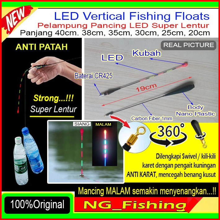 Pelampung Pancing Elektrik Anti Badai Dengan Lampu Led Super Lentur Sensitif Berbagai Ukuran