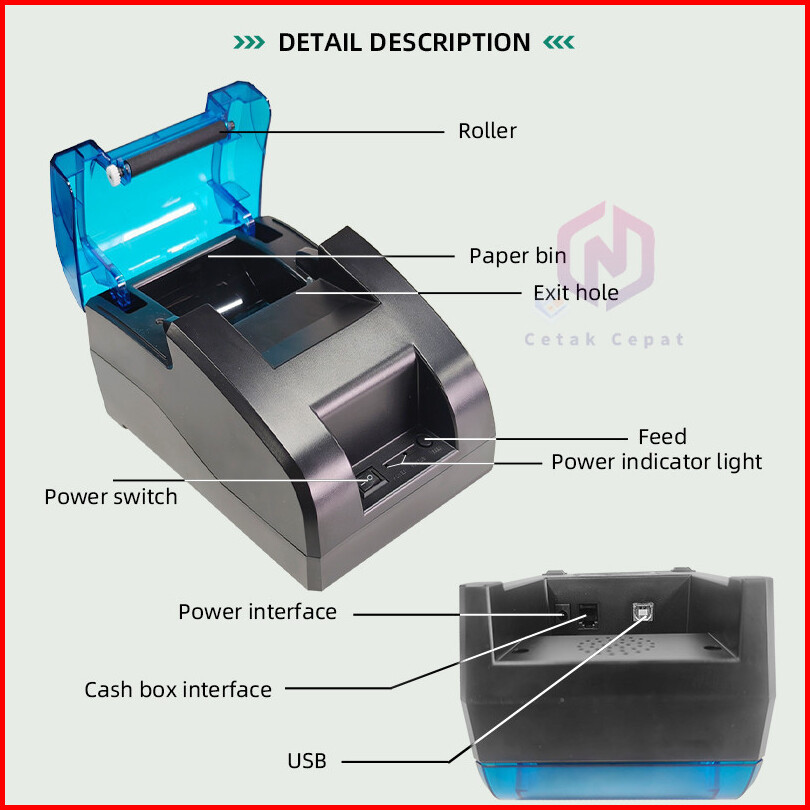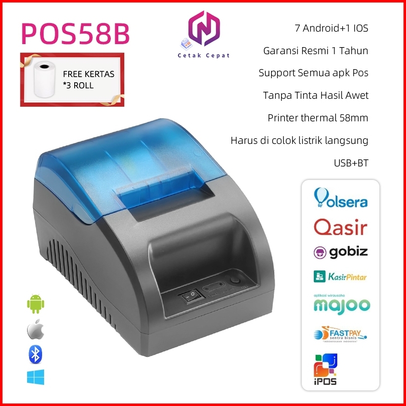 Free 3 Roll Printer Bluetooth Kertas Portable Mini Printer Thermal 2 Inch Wireless Usb Receipt Bill Ticket Printer With
