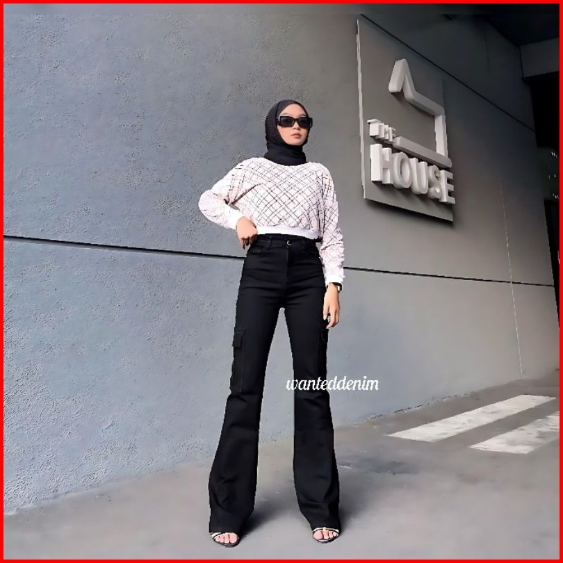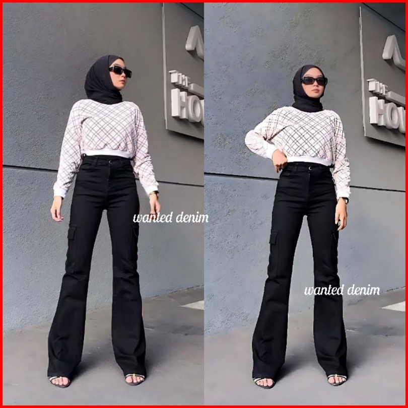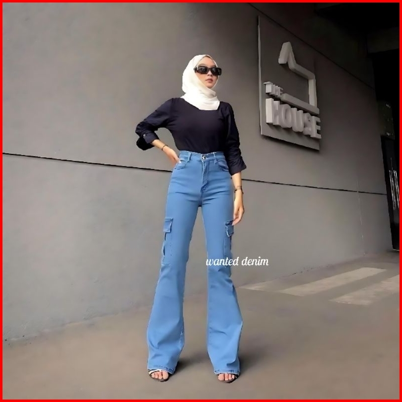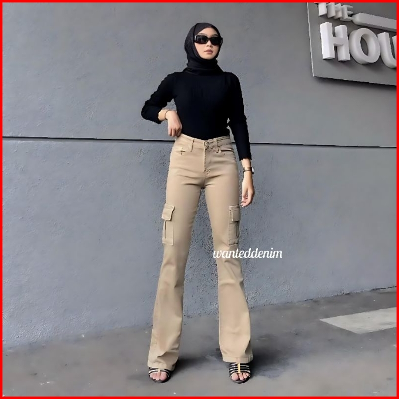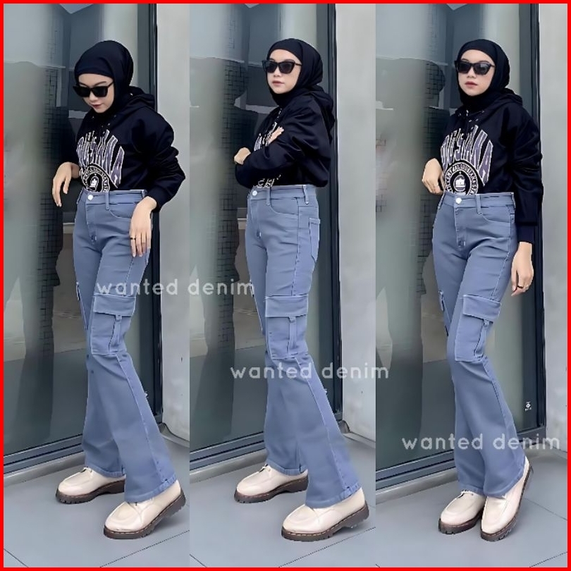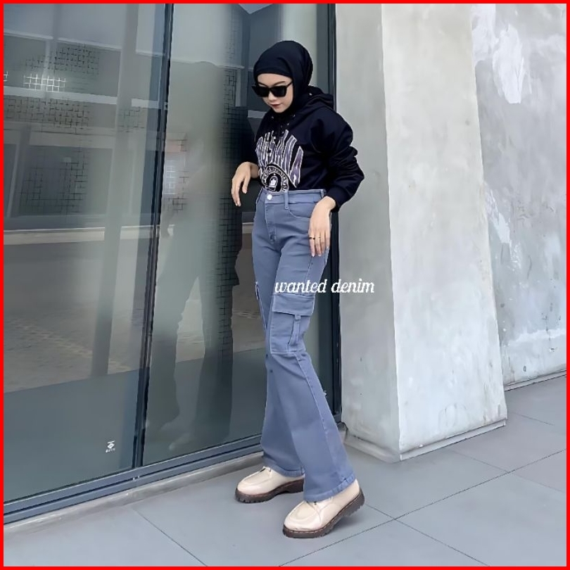 Hw Cutbray Cargo Jeans Wanita - Celana Jeans Wanita - Kargo Cutbray Jeans Highwaist Wanita Streetch