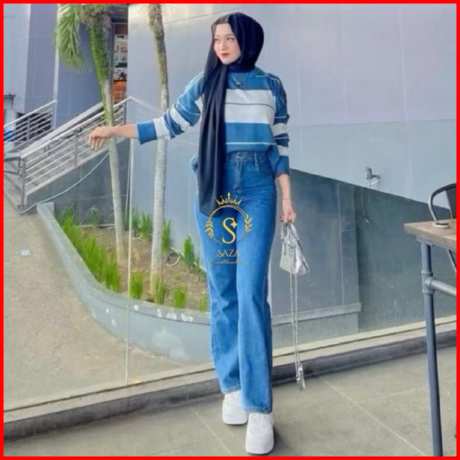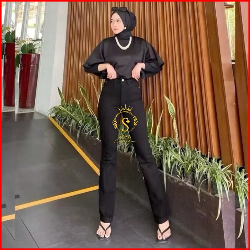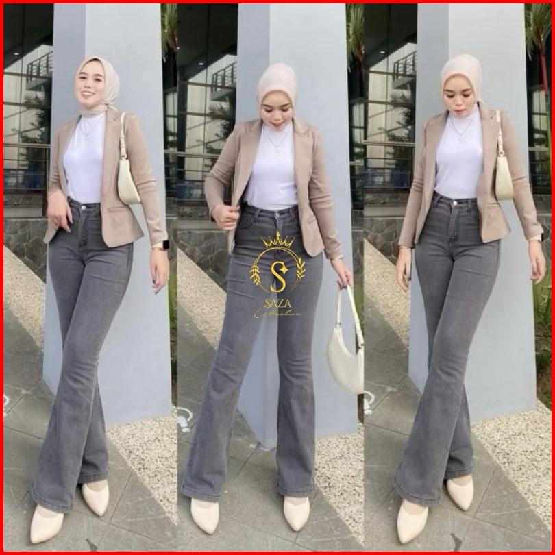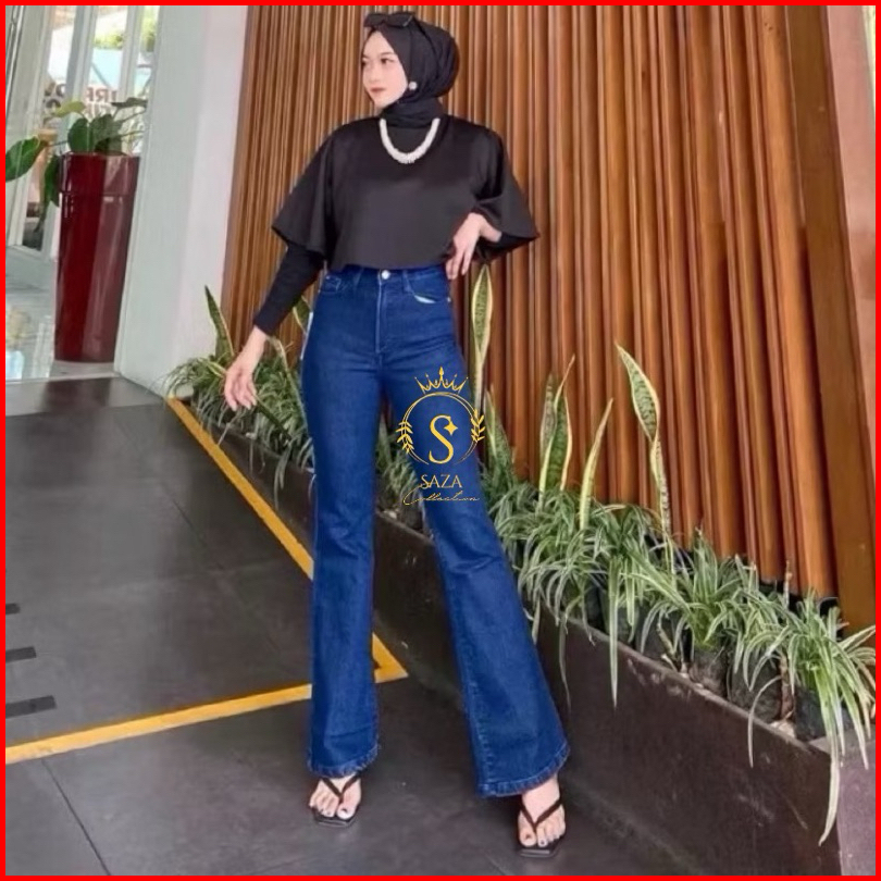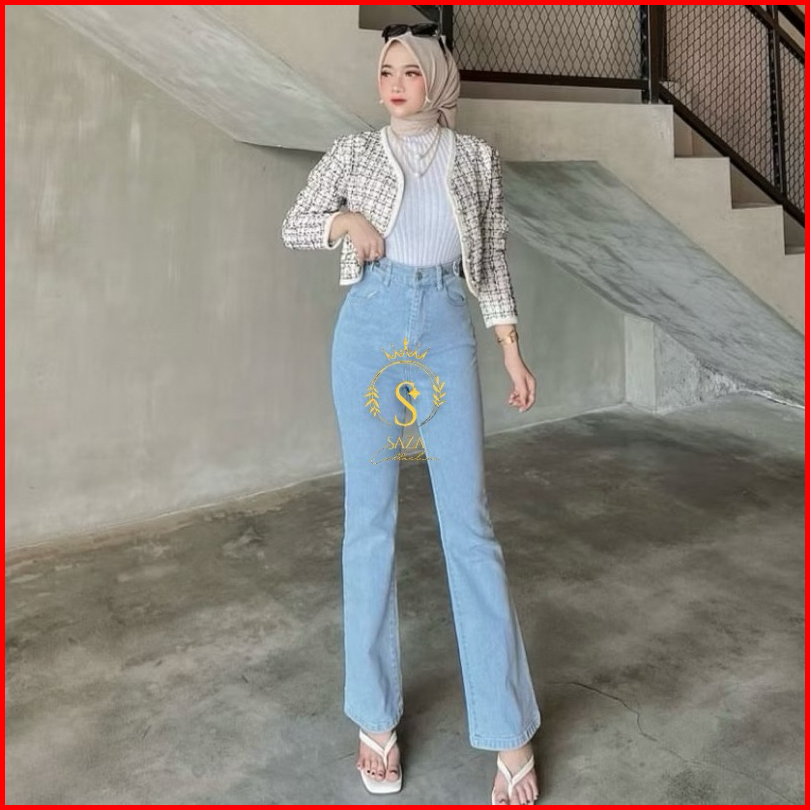 Saza Hw Cutbray Jeans Wanita - Celana Cutbray Strecht Kekinian - Cutbray Flared- Streetch Premium Quality- Jeans Wanita